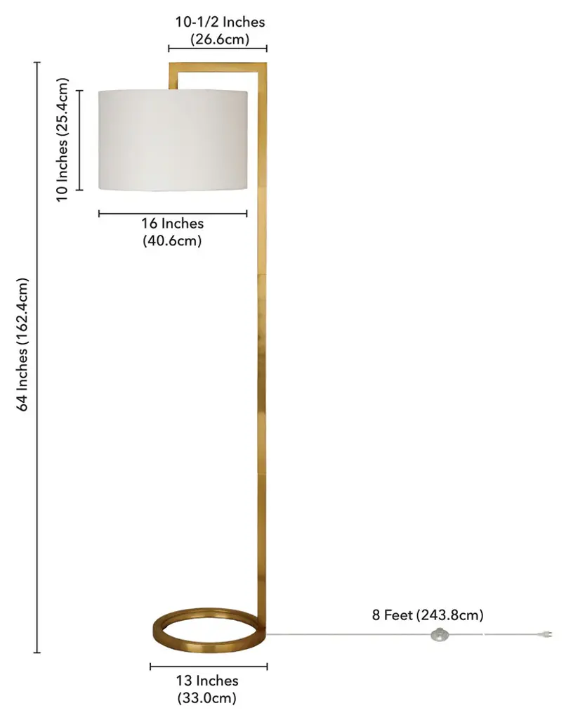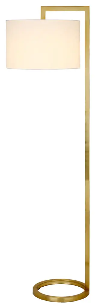 This 64" brass traditional shaped floor lamp with white frosted glass drum shade is the perfect combination of design and function mixed with basic good looks. A gorgeous brass metal base bring just the right amount of pizzazz to this fabulous lamp. The brass base coloring infuses a warm and rich tone to your space. This good looking lamp includes a fabric drum shaped shade. Classically styled, this traditional lamp features a straight pole that extends upwards from a single base. High quality design makes this a great lamp for not only lighting, but accenting a room with style. It is perfect for virtually any decor. 64" H x 16" W x 16" D