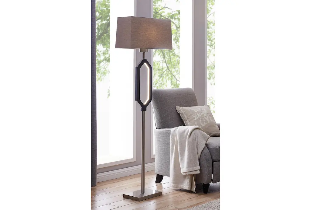 64 Inch Charcoal Grey Metal Floor Lamp With Led Night Light