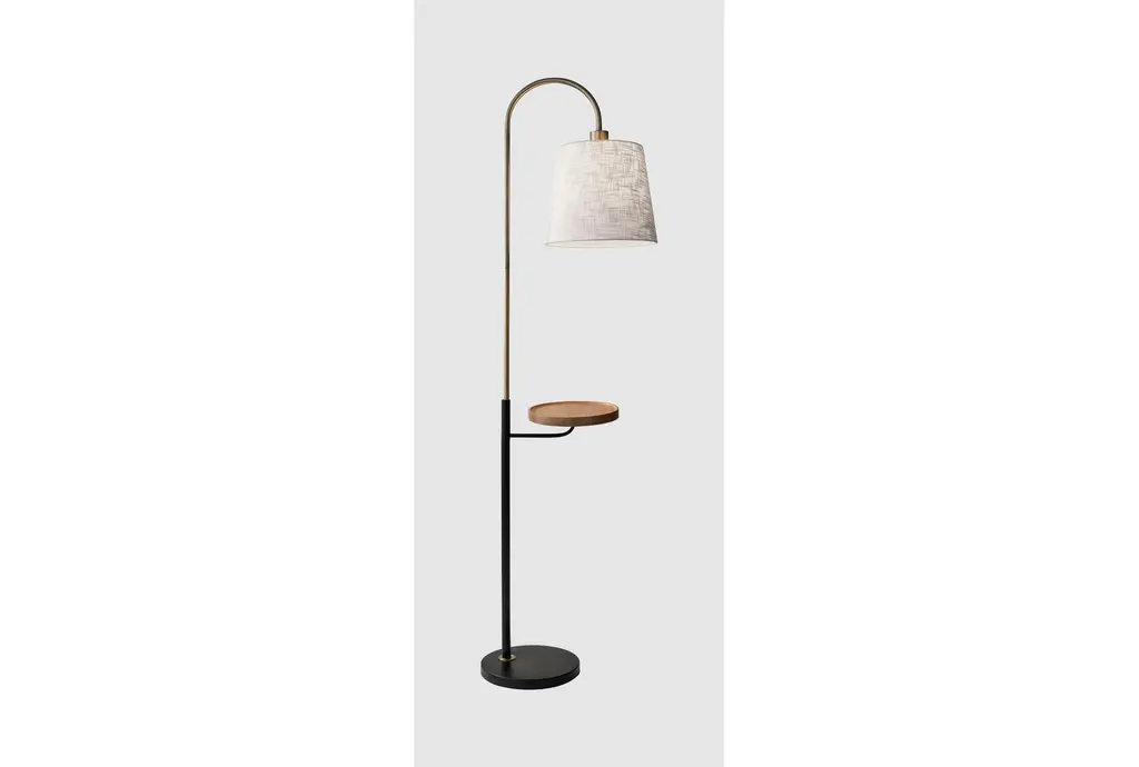 65" Matte Black Metal Brass + Natural Rubberwood Floor Lamp With Tray + Usb