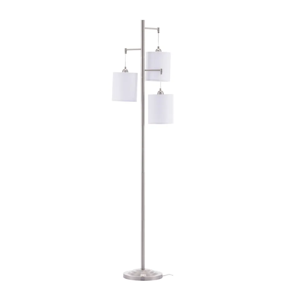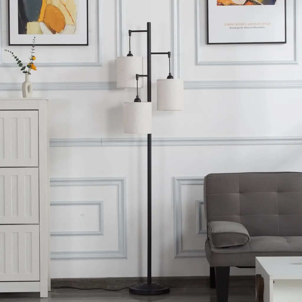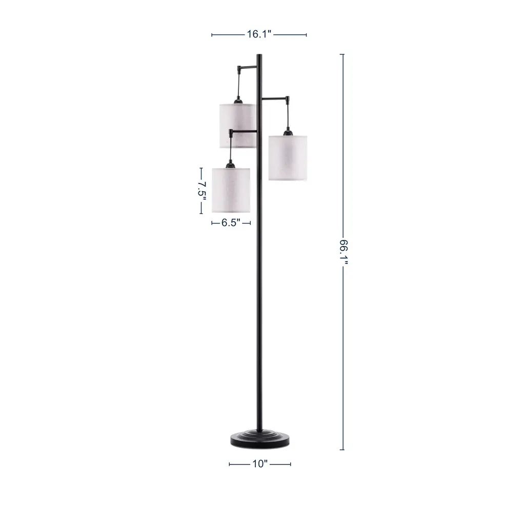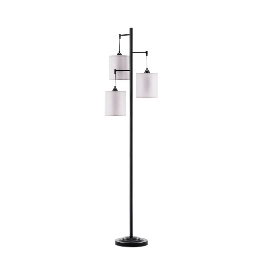 66.1" Tree Floor Lamp. Features clean lines and a simple, minimalist design that give your room contemporary and farmhouse decor. A combination of three round lampshades and metal pole, adding an elegant and warm atmosphere to you home, it's a good choise for your bedroom, living room, study, office, etc . Features: - Bulbs are not included. Three adjustable lights position by rotating the center pole, each light with a round cage lantern shades crates a modern, adorable look; - 3 pieces of Round lampshade with Linen fabric texture softly diffuses light, creating a warm and comfortable ambiance. - Durability & Stability, made of metal post & base, and the thickened base makes it more stable and prevents from shaking or tipping; - Foot switch, easy to turn on/off the lights when your hands are occupied. - 2 Color for choosing. - Easy to assemble, the package come with installation insutrction, just take few minutes to assemble it. Specifications: Overall size:16.1"x11"x66.1"H Base size:10" Shade:6.5"x7.5" Product Weight:11.22 LBS Package Weight:13.45 LBS Carton size:17.32x13.39x7.28" Product Type:Tree Number of Lights:1 Maximum Watage Per Bulb:60 Watt Bulb Included:No Bulb Shape:Standard Bulb Base:E26/Medium(Standard) Buld Not Included But Required:Yes Base Material:Metal Metal Type:Iron Power Source:Plug-in Plug-In:Yes Switch Included:Yes Switch Type:Foot Switch Switch Location:Inline Cord Shade Included:Yes Shade Material:Linen Shade Color:White Shade Shape:Round Set Type:Single Voltage:120 Volt Cord Color:Black/Transparent Assembly: Assembly Required:Yes Level of Assembly:Partial Assembly Assembly Time:15 Minutes Adult Assembly Required:Yes Suggested Number of People:2 Additional Tools Required:All tools included Notes: 1.Manual measurement has been used, there may be some reasonable error. 2.All the pictures are taken by actual samples, slight chromatic aberration may occur due to lighting or display. After-sales service: 1.If the parts are lost or damaged when we receive the product, we will send the parts free of charge. 2.If you have any questions about the product, please contact our email:liveditor_os@hotmail.com.Thanks.