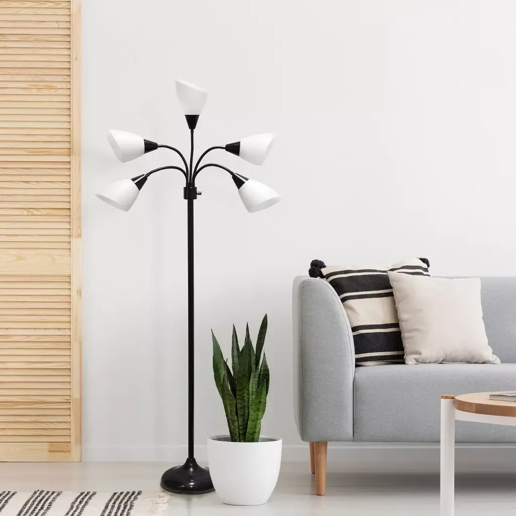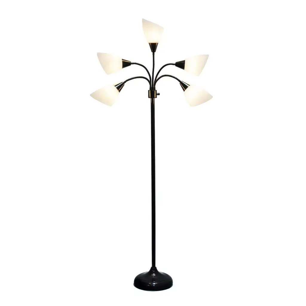 67" Contemporary Multi 5-head Gooseneck Adjustable Floor Lamp With Shades - Simple Designs: Etl Listed, Metal Body, Plastic Shades