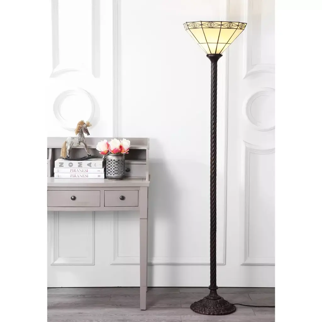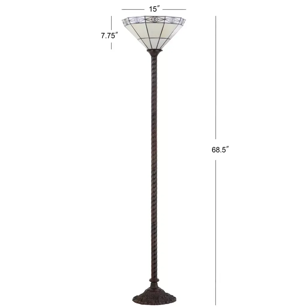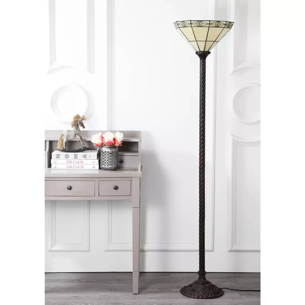 68.57" Moore Tiffany Style Torchiere Floor Lamp: Art Nouveau, Silk-wrapped Cord Includes Led Bulb - Jonathan Y