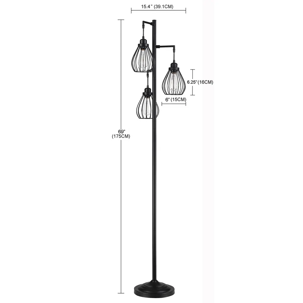 This charming 3-light tree floor lamp features a hanging steel cage shade that casts a warm glow, adding an elegant ambiance to your home. With its vintage rustic and industrial style, it seamlessly complements any room and pairs beautifully with other decor elements. The straightforward installation process ensures that you can enjoy this unique lighting option in no time. (bulb not included) Features:Specification: