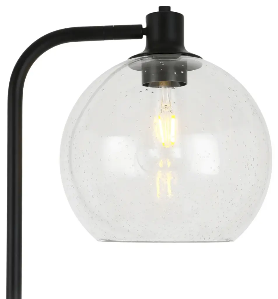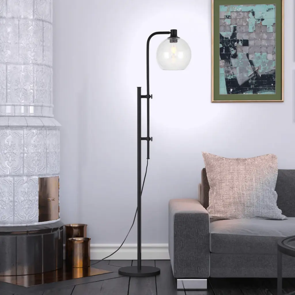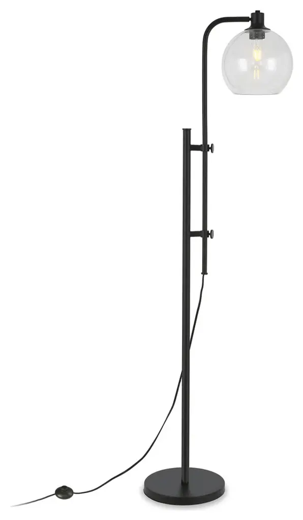 Add a bright anchor to your room with this 68" black adjustable reading floor lamp with clear seeded glass globe shade. The base of this lamp is made of black metal. The coloration of the black lamp base creates a fashionable marriage with the the clear glass globe shaped shade. Next to your desk or favorite chair this single base task/reading lamp is designed to make your work or activities easier with concentrated light in just the space you need it. High quality design makes this a great lamp for not only lighting, but accenting a room with style. It is perfect for virtually any decor. 68" H x 18" W x 11" D
