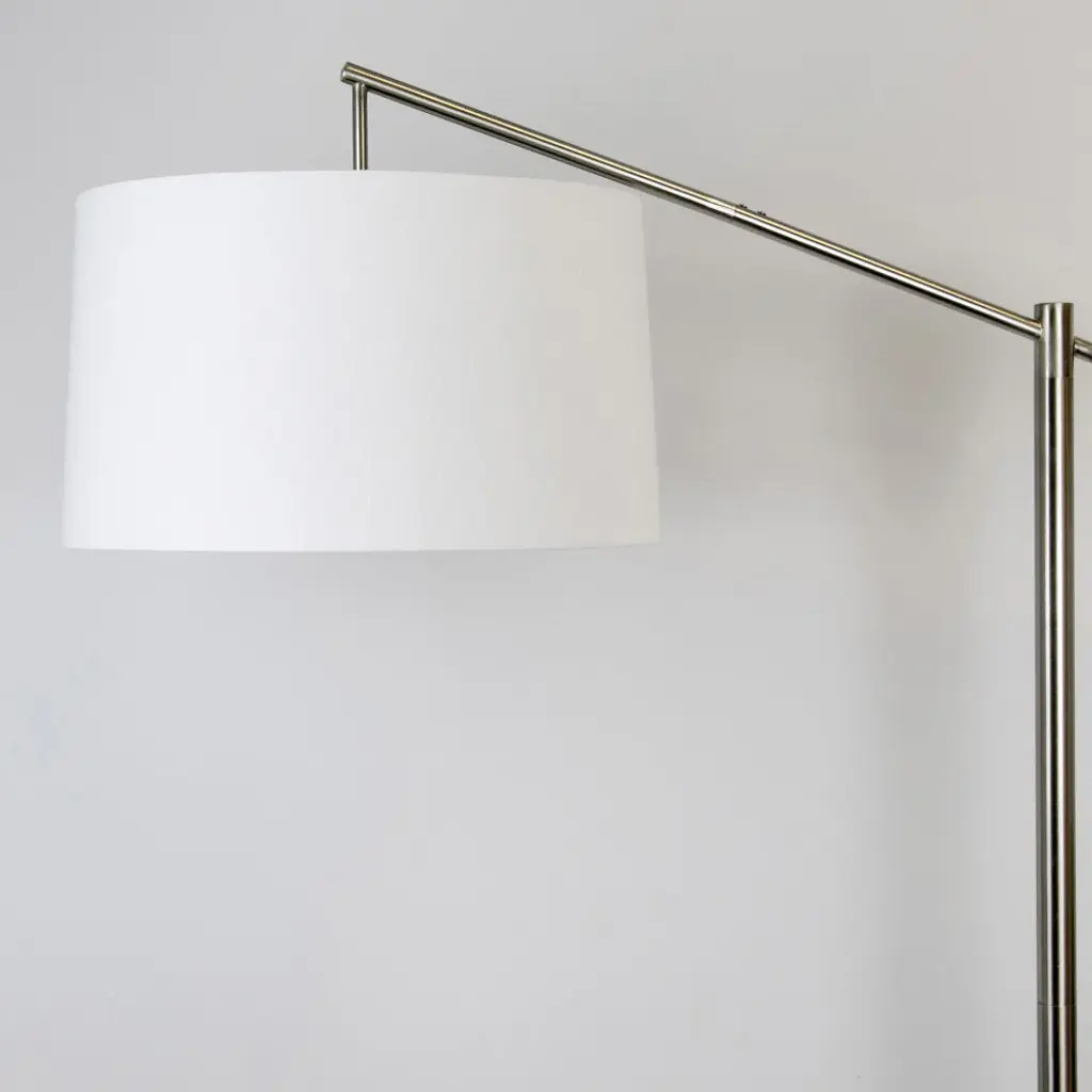 VERSATILE FLOOR LAMP This stylish white and brushed nickel floor lamp is the perfect addition to any space to provide additional light or just as a beautiful decor element!LINEN AND BRUSHED NICKEL This 69" total height floor lamp features a versatile white linen lampshade with a brushed nickel body. It adds the perfect finishing touch to any space, and the white shade complements any style or color decor!FOR LIVING ROOMS AND MORE This white floor lamp is perfect for beside a loveseat or behind the couch, in a study or any space that you''re looking to add some additional light and sophistication to!CLASSIC AND CONTEMPORARY The classic and contemporary design elements and white lamp shade ensure this floor lamp perfectly complements any style, type or color decor. HIGH-QUALITY AND DURABLE This task floor lamp is the highest quality, durable and sure to last the test of time. You''ll be enjoying additional light and a beautiful decor touch for years to come!