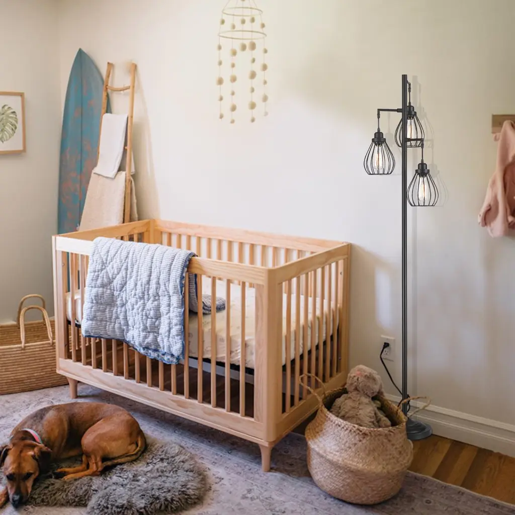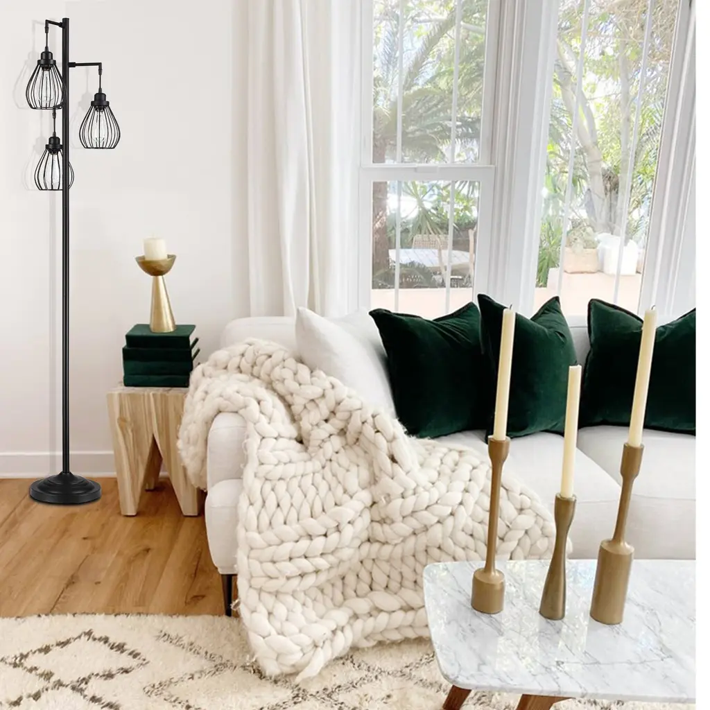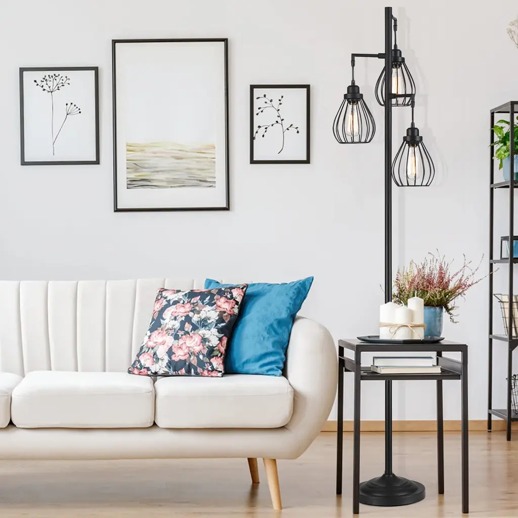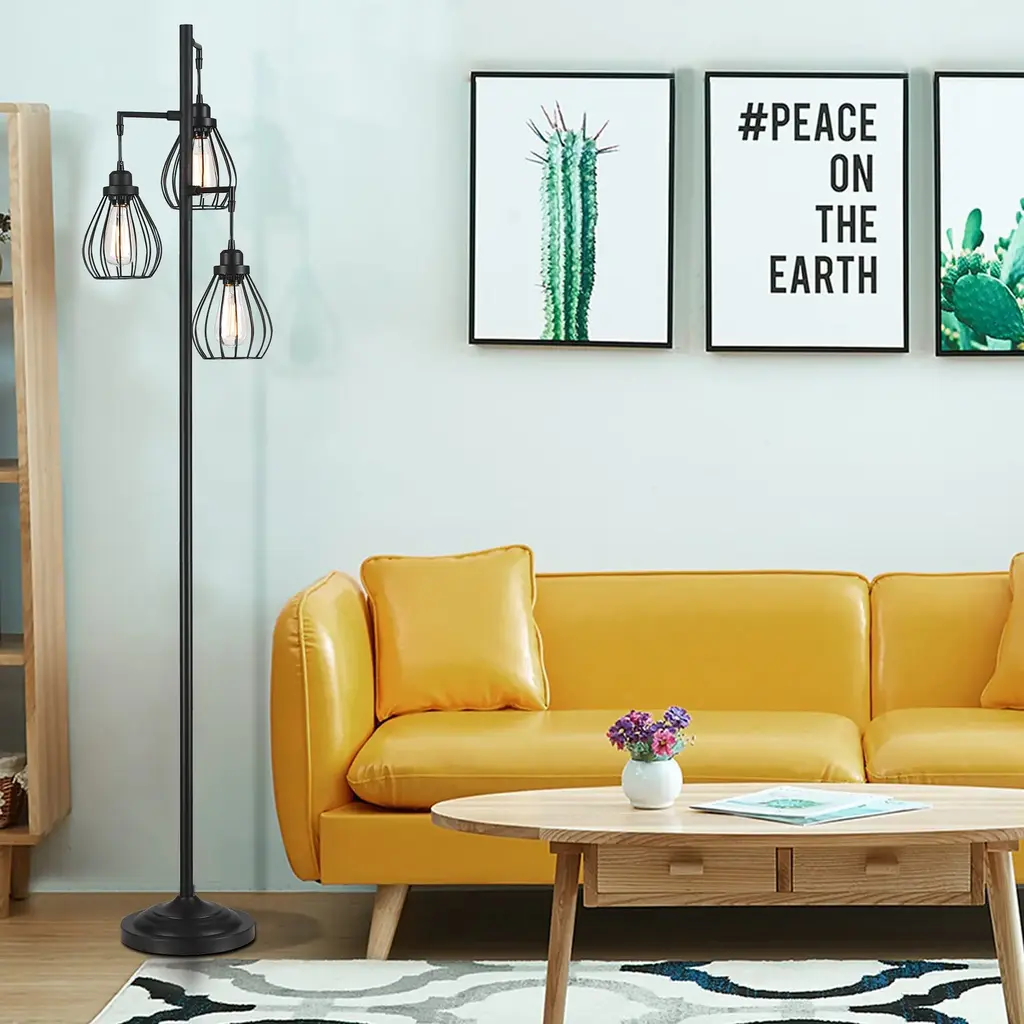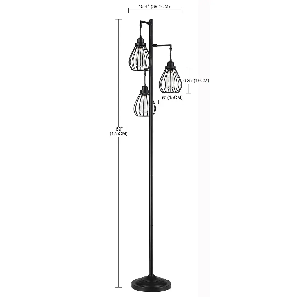 Description: The fully crafted Hukoro 68.9 in. 3-Light Tree Floor Lamp with Hanging Steel Cage shade adds a touch of retro, elegant ambiance to the interior of your home. With vintage rustic style, this tall tree lamp will create a warm and inviting space for you to relax, meditate, or enjoy a comfortable evening with family and friends. Perfect for your bedrooms, living room, office, kids room, college dorm, foyer, or guest room. 3 ST19 incandescent bulbs up to 60-Watt are included and nestled in these steel cage shades. Warm up your home with this charming tree floor lamp. Features: