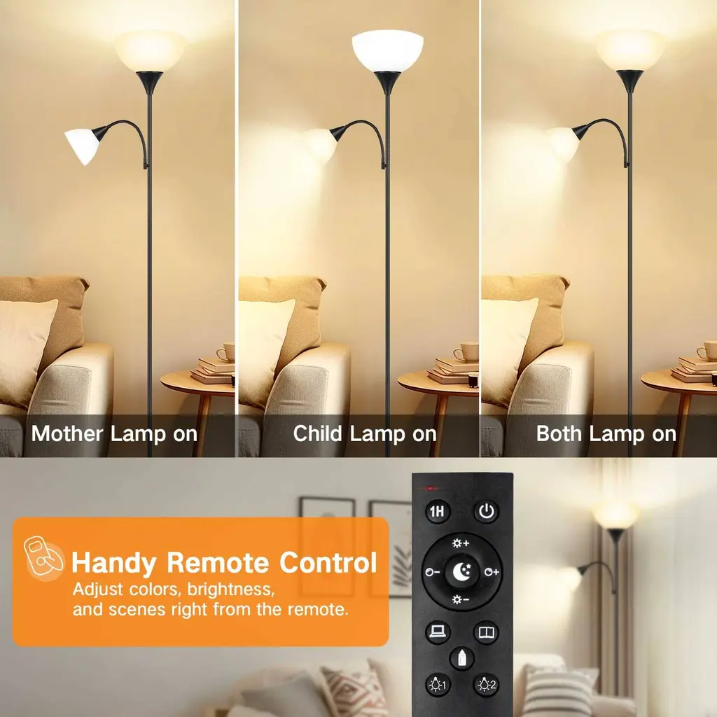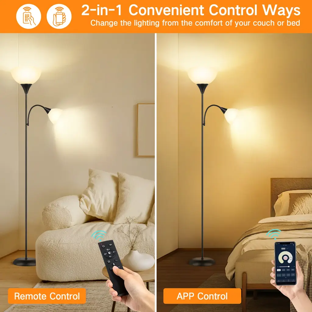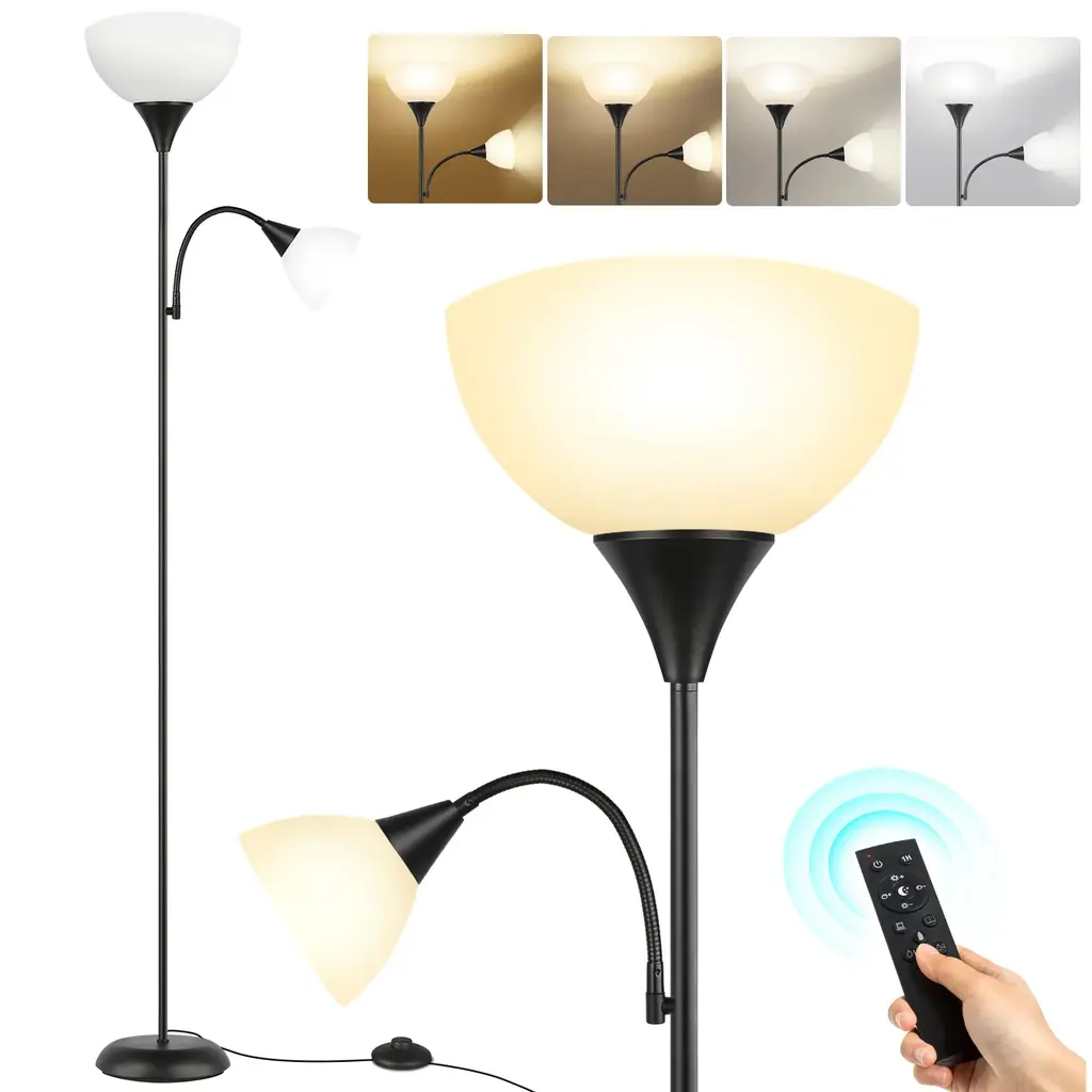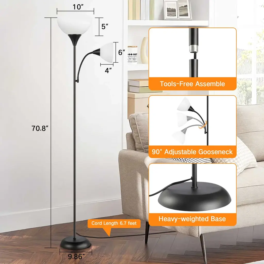 70" Tall Led Torchiere Floor Lamp Adjustable Reading Light With 2 Remote Control And Foot Switch - N/a - Black