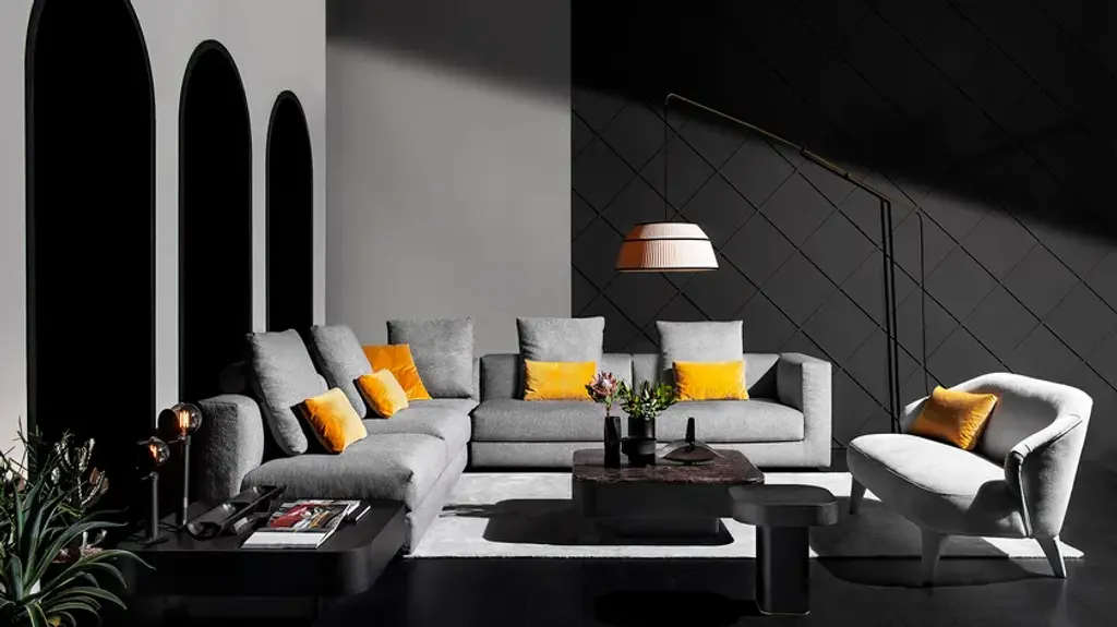 A suspended pleated fabric canopy, embodying the essence of classical tradition, features meticulously enhanced pleating with black grosgrain accents. The ethereal transparency achieved by backlighting the fabric enriches the ambiance of the space.Technical featuresStructure: black painted round rod with glossy brass intersection.Base: Carrara white marble.Lampshade: structure in black wire covered in white pleated fabric.Bulb included: E27 60W max CE
