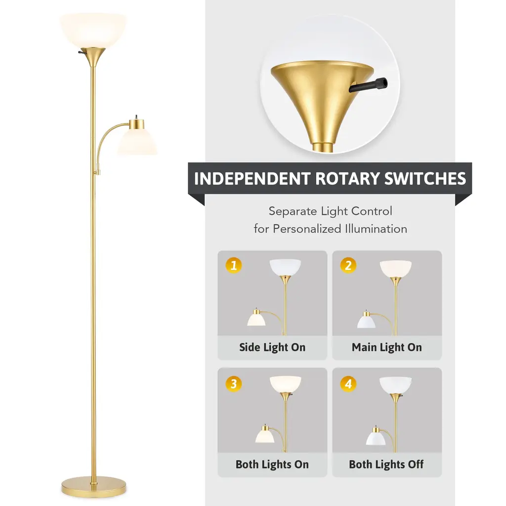 71" Torchiere Floor Lamp 2-Light Standing Lamp With Reading Light - Gold