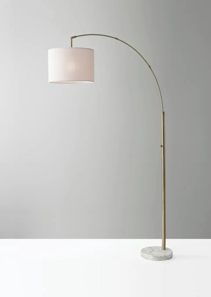 74 Inch Antique Brass Metal + Textured Linen Shade Arc Floor Lamp | Adjustable