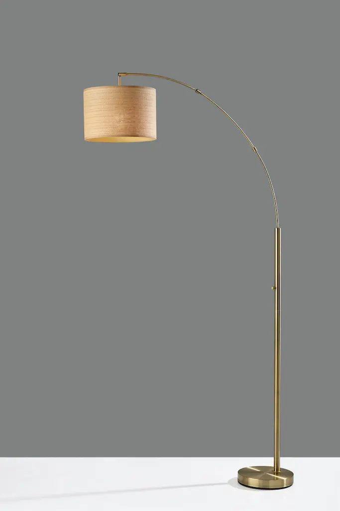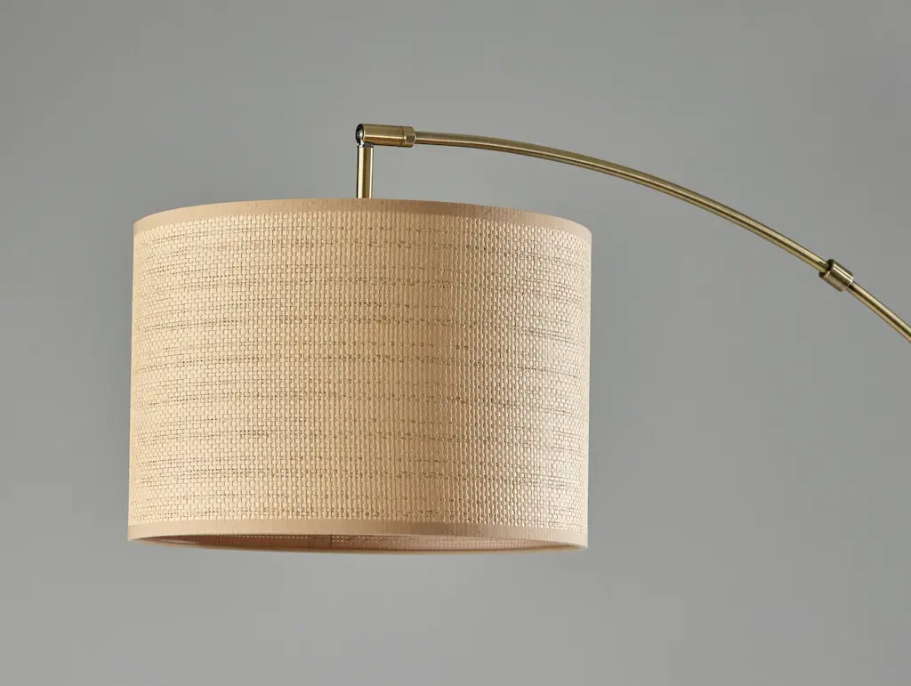 74 Inch Antique Brass | Natural Woven Paper Shade | Metal | Adjustable | Tall Arc Floor Lamp