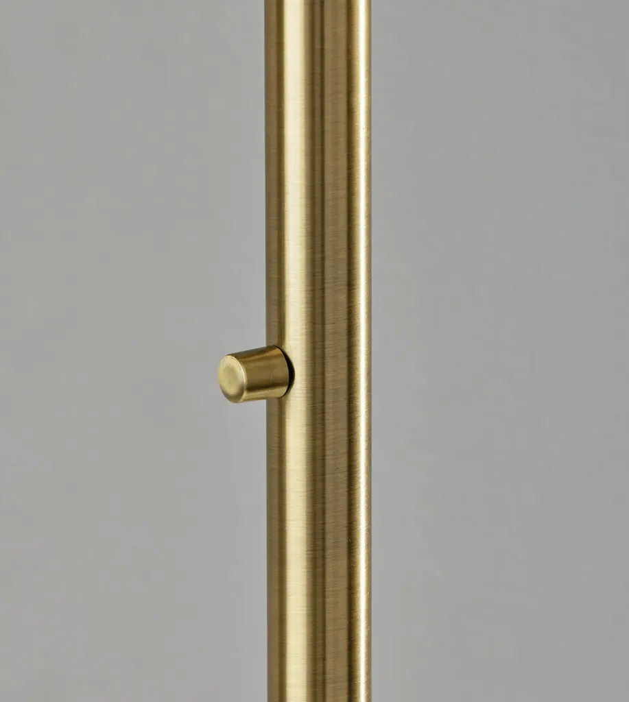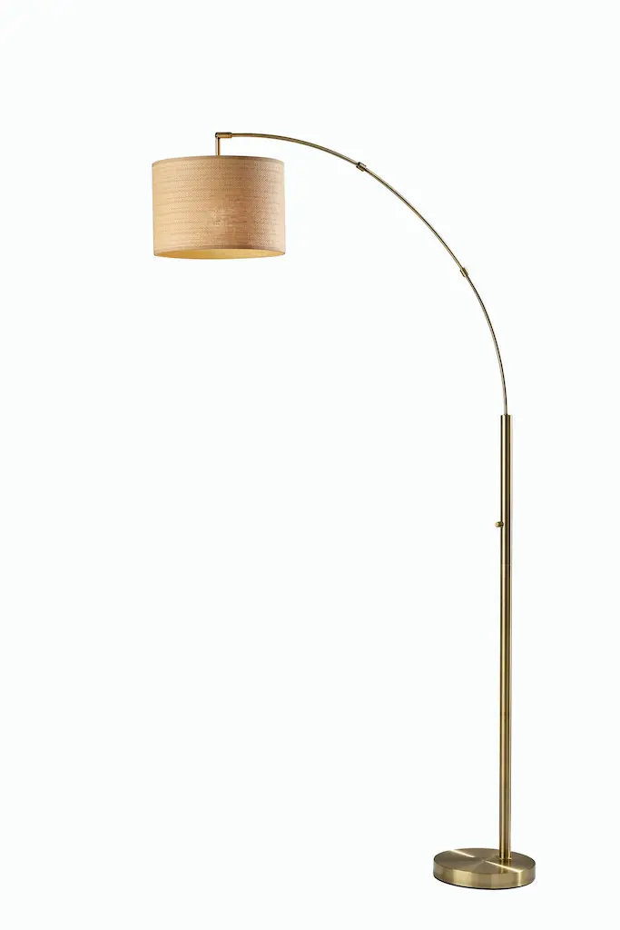 Elevate your living space with the 74 Inch Antique Brass + Natural Woven Paper Shade Arc Floor Lamp. This modern floor lamp features a stunning antique brass finish and a natural woven paper shade, blending seamlessly with casual and boho styles. Its versatile design allows you to rotate and reposition all three stems, creating a variety of shapes to suit your decor needs.