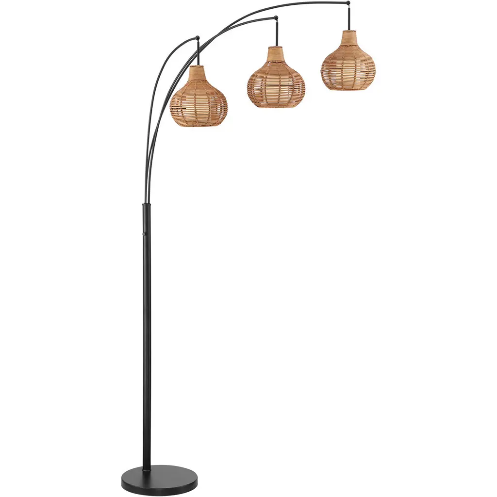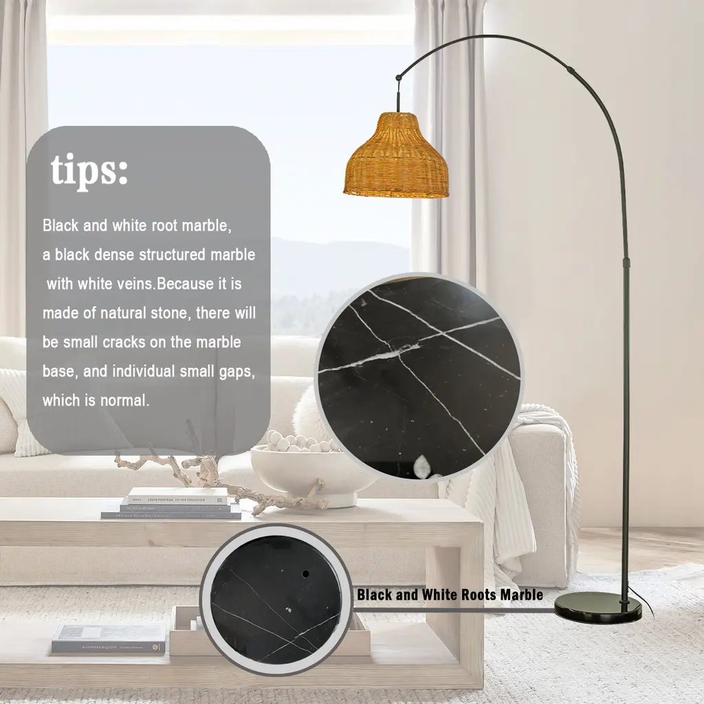 75" 1-Light Arc Floor Lamp With Brown Rattan Shade And Marble Base - Matte Black