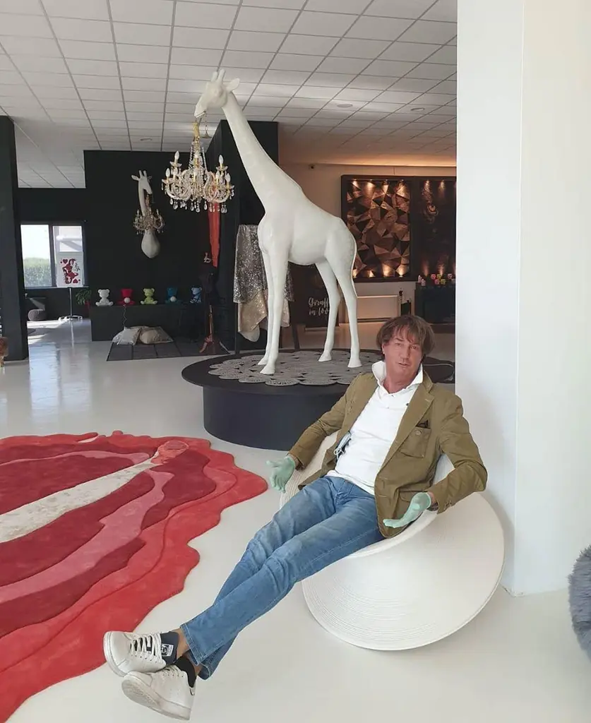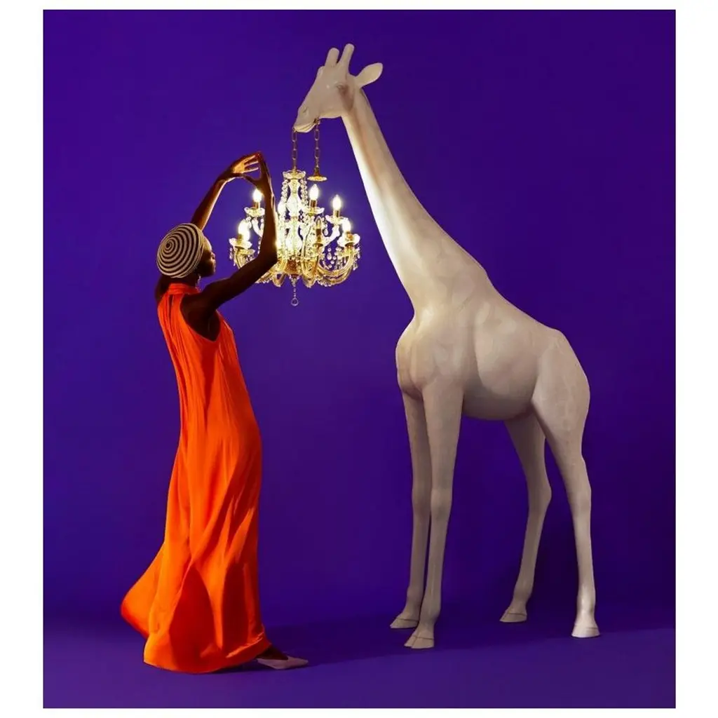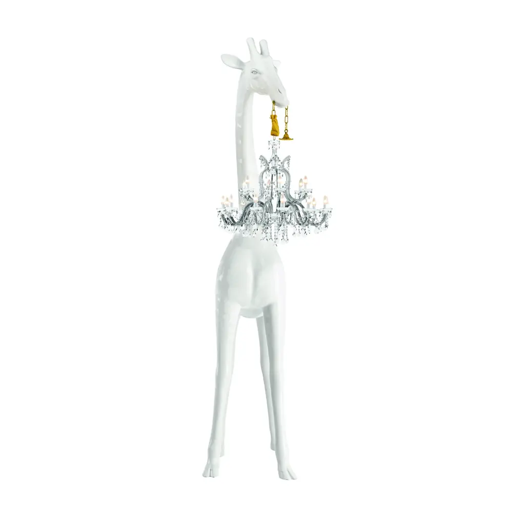 "Giraffe in Love" is the new product born from artist/designer Marcantonio. It is a dreamy indoor giraffe holding a classic Marie-Thérèse style chandelier. It represents irony and lightness: the giraffe is in love but she does not know it yet because her heart is far from her head and she lives love light-heartedly. After the huge success of Marcantonio’s giraffe, handmade in fiberglass, we are introducing the new 8.6 feet tall version of the iconic giraffe. This dimension allows it to fit everyone’s homes.This fabulous giraffe plugs like any floor lamp, the electrical wire comes out of one of the rear leg.Made in Italy:Made in Italy furniture means design, quality, style and sophistication.The typical elegance of Italian design can be found in this piece. No wonder that the world famous designers like Philippe Starck, Karim Rashid, Piero Lissoni, Rodolfo Dordoni and many others put their signature next to Made in Italy.