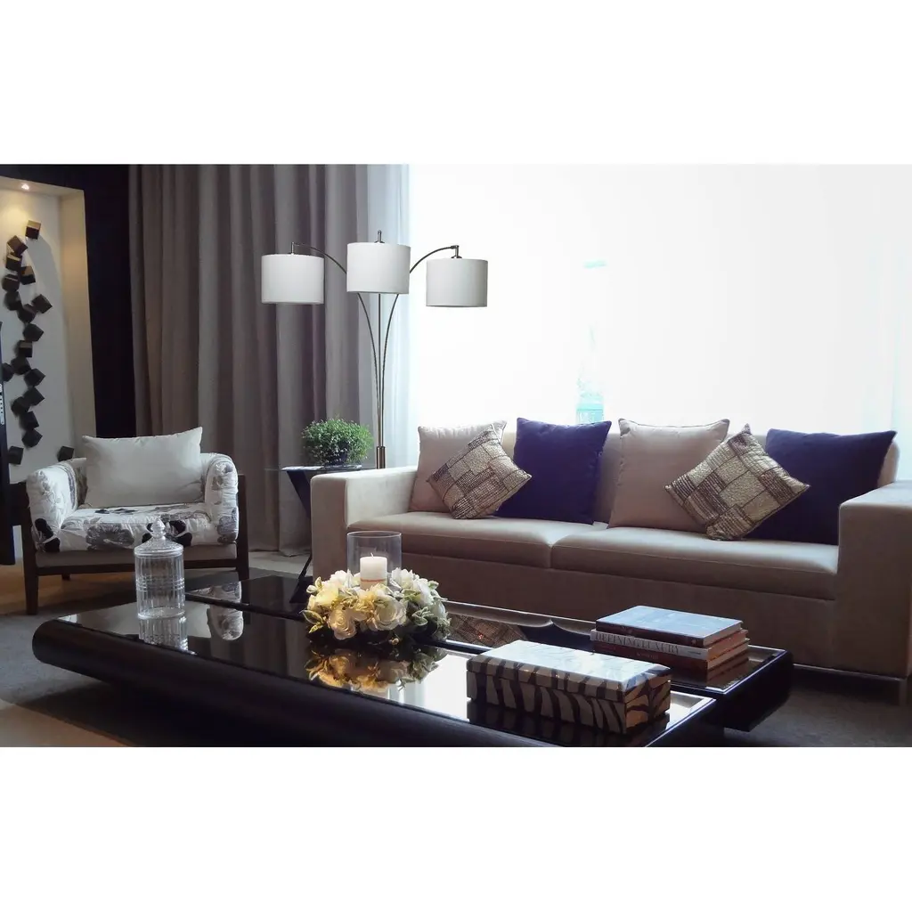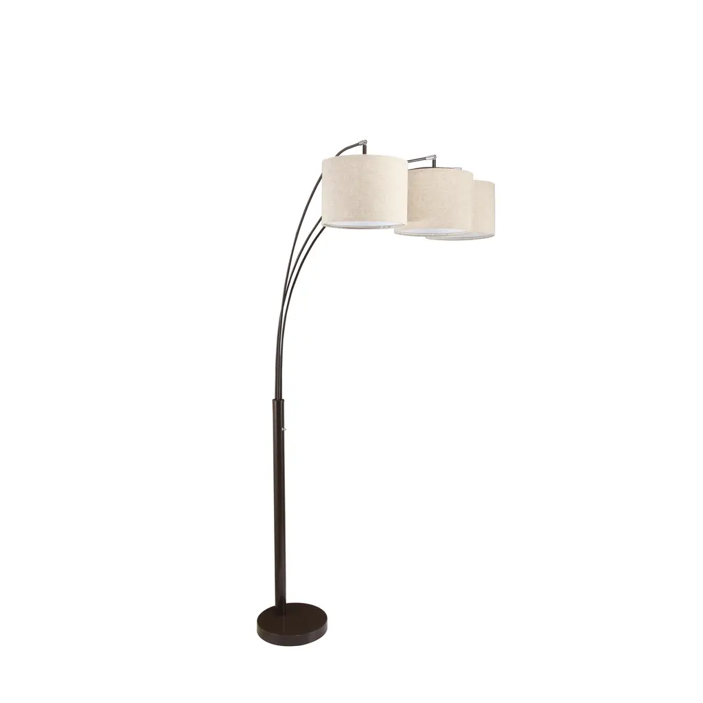 A floor lamp is the perfect blend of style and function, offering versatile lighting solutions for any room in your home. Whether you're looking to add ambient lighting to your living room, reading light beside your favorite chair, or an accent piece for your bedroom, a floor lamp provides both practical illumination and a touch of elegance.Bulbs: 3 x 60W Type A Incandescent, CFL or LED Bulb compatible (not included)84" Novalit 3-Arc Metal Floor Lamp in a captivating combination of beige and espresso brownStabilized with a beautiful espresso metal base, this contemporary 3-light Arc floor lamp features an arc arm the lends a refined sensibilityBoasting a rich espresso finish, this lamp includes three adjustable shades that can tilt to a 45 degree angle for added versatility3 Way Switch located on Body Pole. Input Voltage: 110-120V. Black Cord measures 68"L.