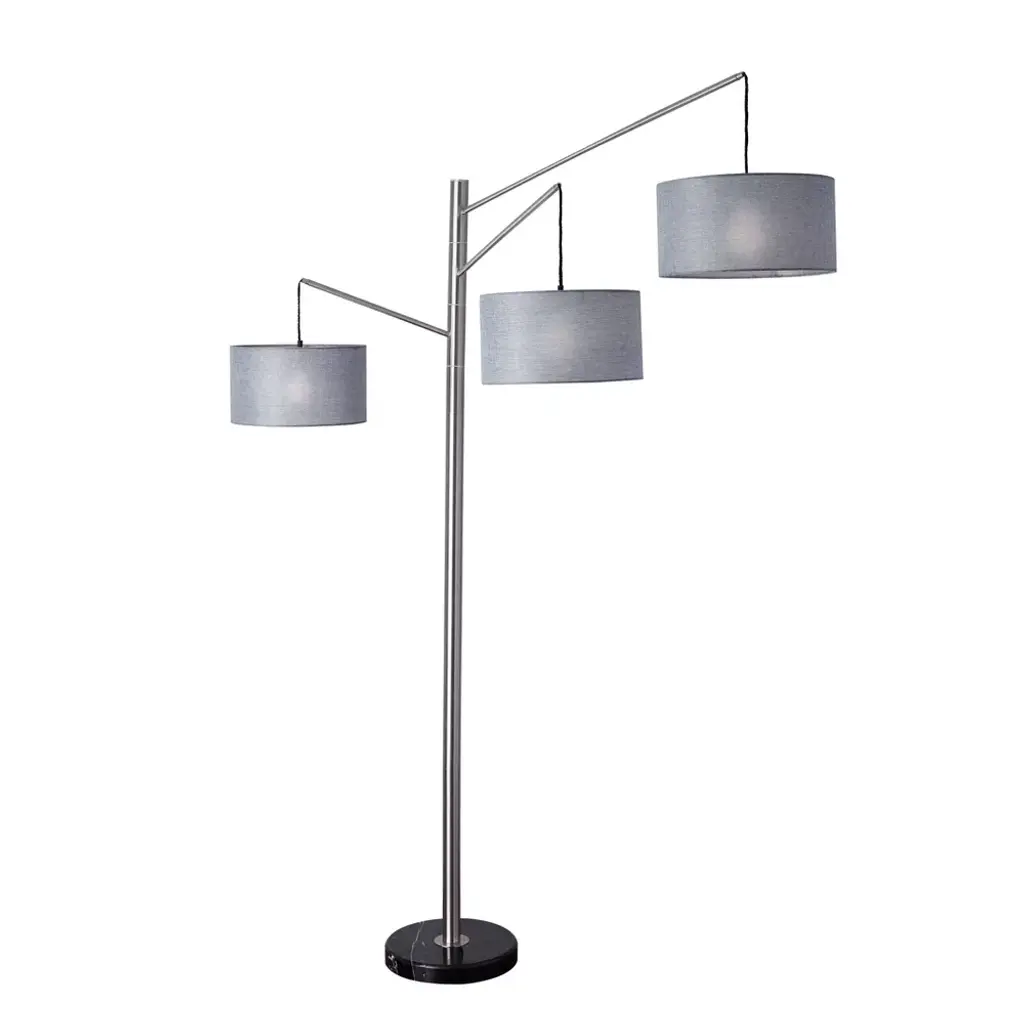 91" Wellington Arc Lamp Silver - Adesso: Modern Multi-head Adjustable, Etl Listed, Metal Body With Linen Shade