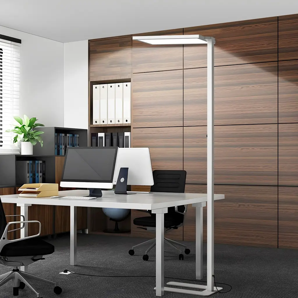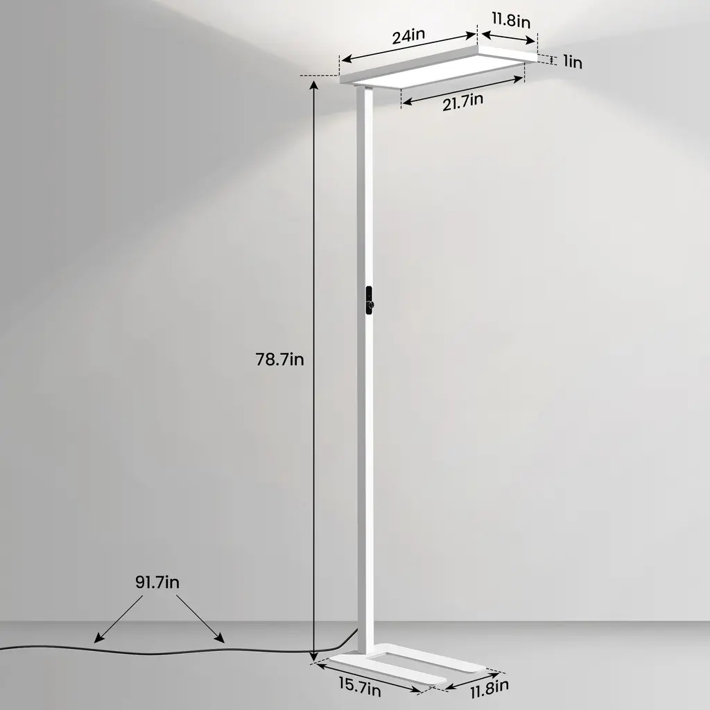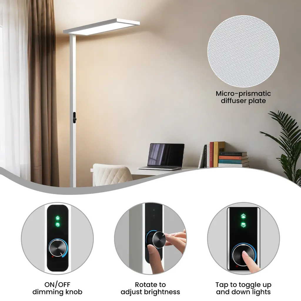 This floor lamp adopts a rectangular iron rod with plastic spraying, a U-shaped steel plate lamp holder, and an ultra-thin aluminum profile with upper and lower luminous lamp heads. It is modern, simple and generous, suitable for any space. The lamp head adopts upper and lower luminous plus diffusion plate prism plate, and the light distribution is reasonable. Add stylish and practical lighting to your living space. The light source adopts a dual blue light full spectrum high color rendering index 4000K LED light source, which is realistic and eye-protecting.The soft, non-flickering light gives you a cozy experience while reading or playing after a long time.