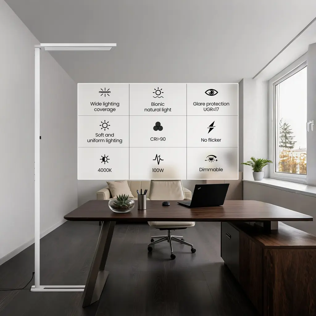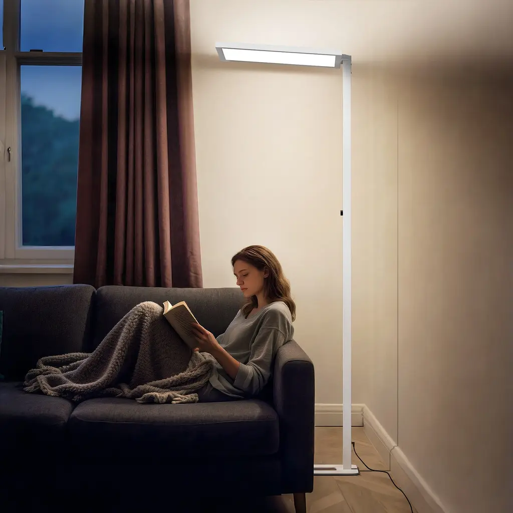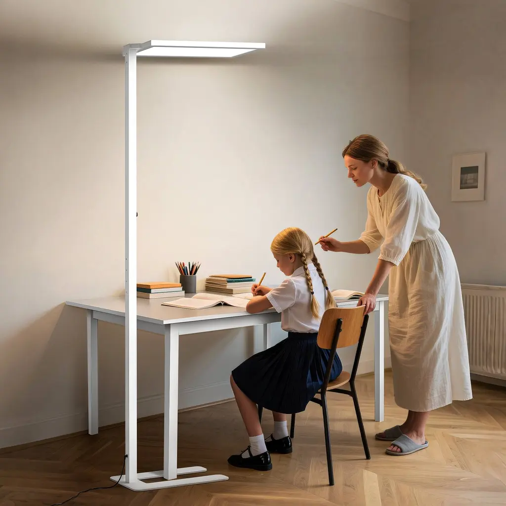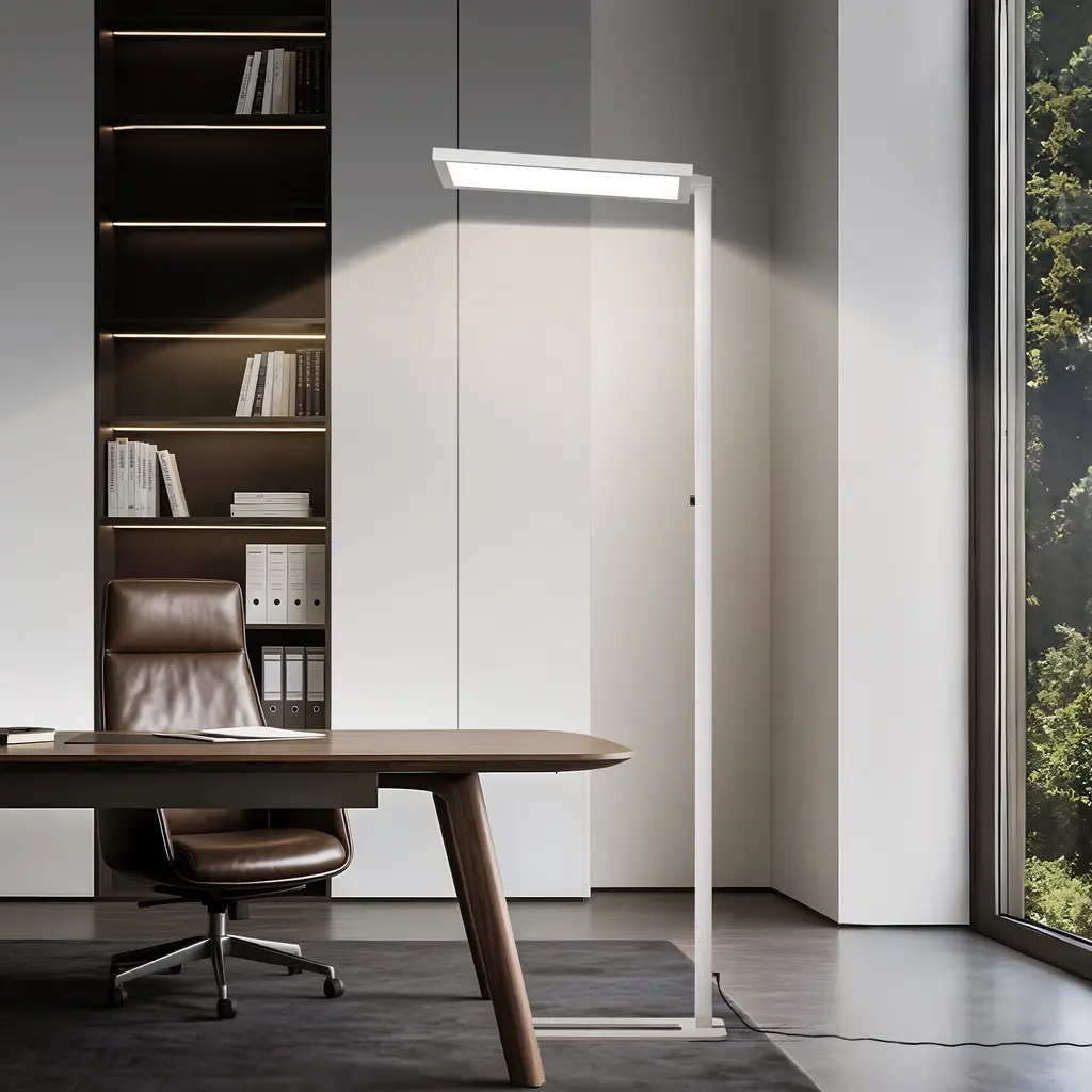 This floor lamp adopts a rectangular iron rod with plastic spraying, a U-shaped steel plate lamp holder, and an ultra-thin aluminum profile with upper and lower luminous lamp heads. It is modern, simple and generous, suitable for any space. The lamp head adopts upper and lower luminous plus diffusion plate prism plate, and the light distribution is reasonable. Add stylish and practical lighting to your living space. The light source adopts a dual blue light full spectrum high color rendering index 4000K LED light source, which is realistic and eye-protecting.The soft, non-flickering light gives you a cozy experience while reading or playing after a long time.