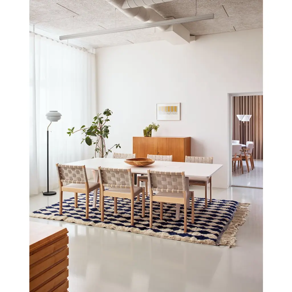 Artek’s A808 floor lamp is a well-balanced combination of different colors and materials: its leg features polished brass and black leather, and the shade is made of thin, layered steel strips that provide a smooth and warm light. Alvar Aalto designed the A808 lamp in 1955 for the National Pensions Institute of Helsinki, and its timeless elegance will easily complement modern homes and public spaces, too.
