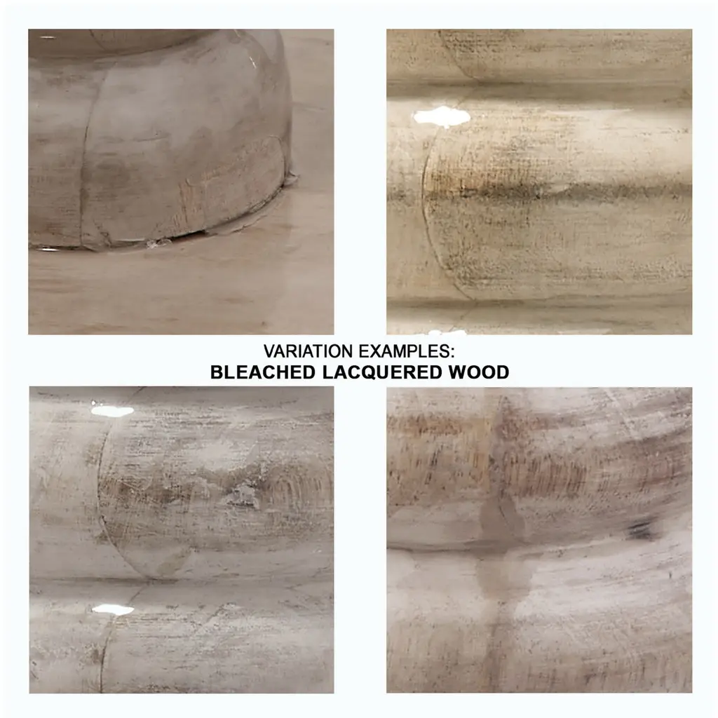 Masterfully carved of mango wood, this attractive, uncomplicated floor lamp was inspired by the beads on ancient counting devices. The bleached finish on the wood base is slightly textured and semi sheer, revealing the beauty of the sustainable hardwood beneath. Each is topped with a drum shade in a light natural poly linen and a coordinating wood finial, and makes a wonderful choice beside a comfy reading chair.
