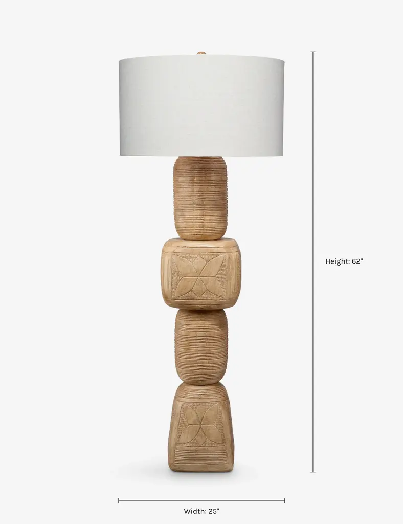 The Abeni lamp brings timeless craftsmanship to modern lighting. The base is made with chunks of mango wood, selected by hand, and carved by local artisans in the Naga region of India. Whether your space is richly collected or a minimalist edit grounded in natural texture, this floor lamp will layer warmth and character into your design.