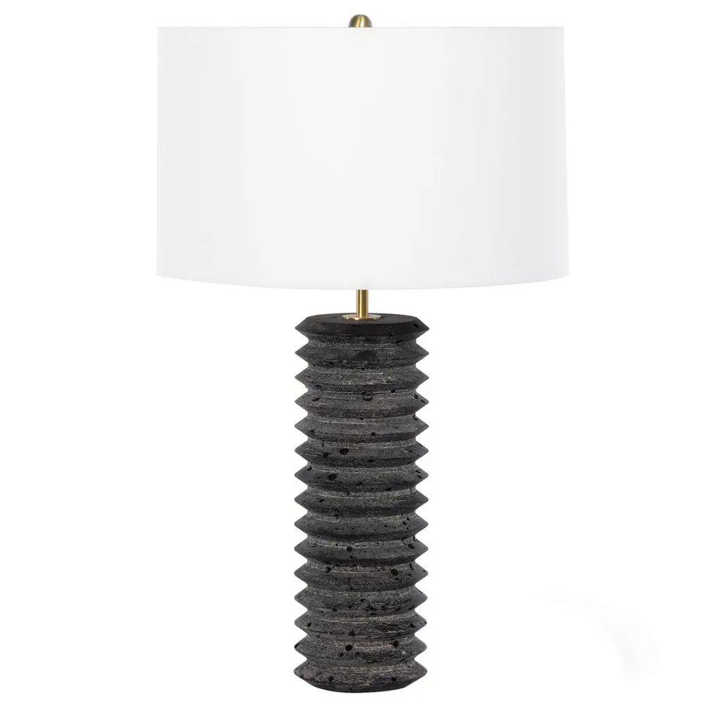 The Accordion is a gorgeous birch table lamp, which instantly draws in the eye with its deeply grooved body, pronounced grain, and ebony finish. A natural linen shade finishes the look with stunning contrast.