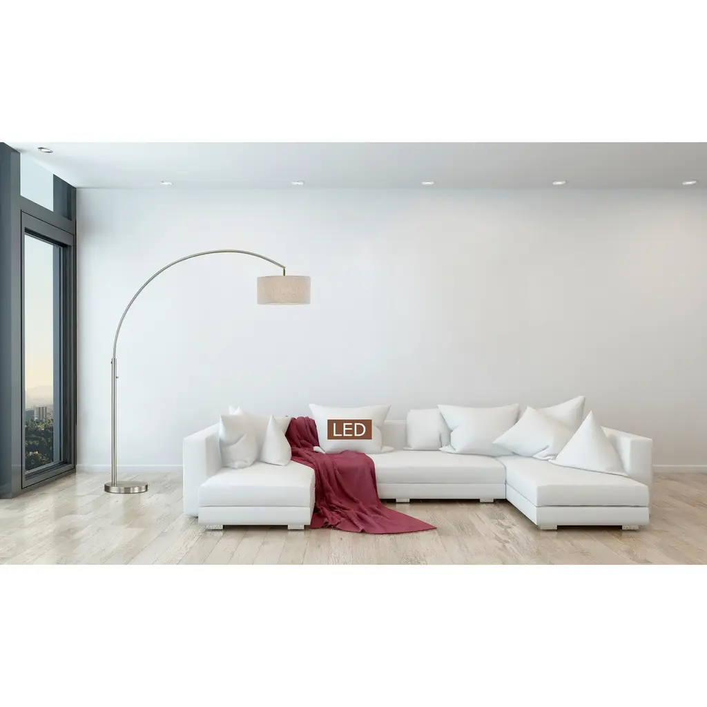 Light up your living space with the Adesso Bowery Black Arc Floor Lamp. This lamp provides adjustable overhead lighting that can be controlled with an adjustable shade, making it the perfect addition to any seating area. The lamp features a sleek black finish and a black marble base that will add a touch of sophistication to your home decor. The taupe textured fabric drum shade beautifully diffuses the 100 Watt bulb (not included) to create a warm and inviting glow. With an on/off rotary switch conveniently placed on the pole, this lamp is both functional and stylish.Features:Measurements: