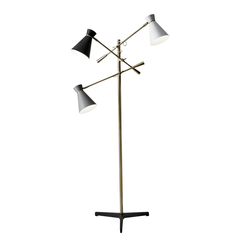 Adesso Lyle Black And Antique Brass 3-Arm Floor Lamp - N/a