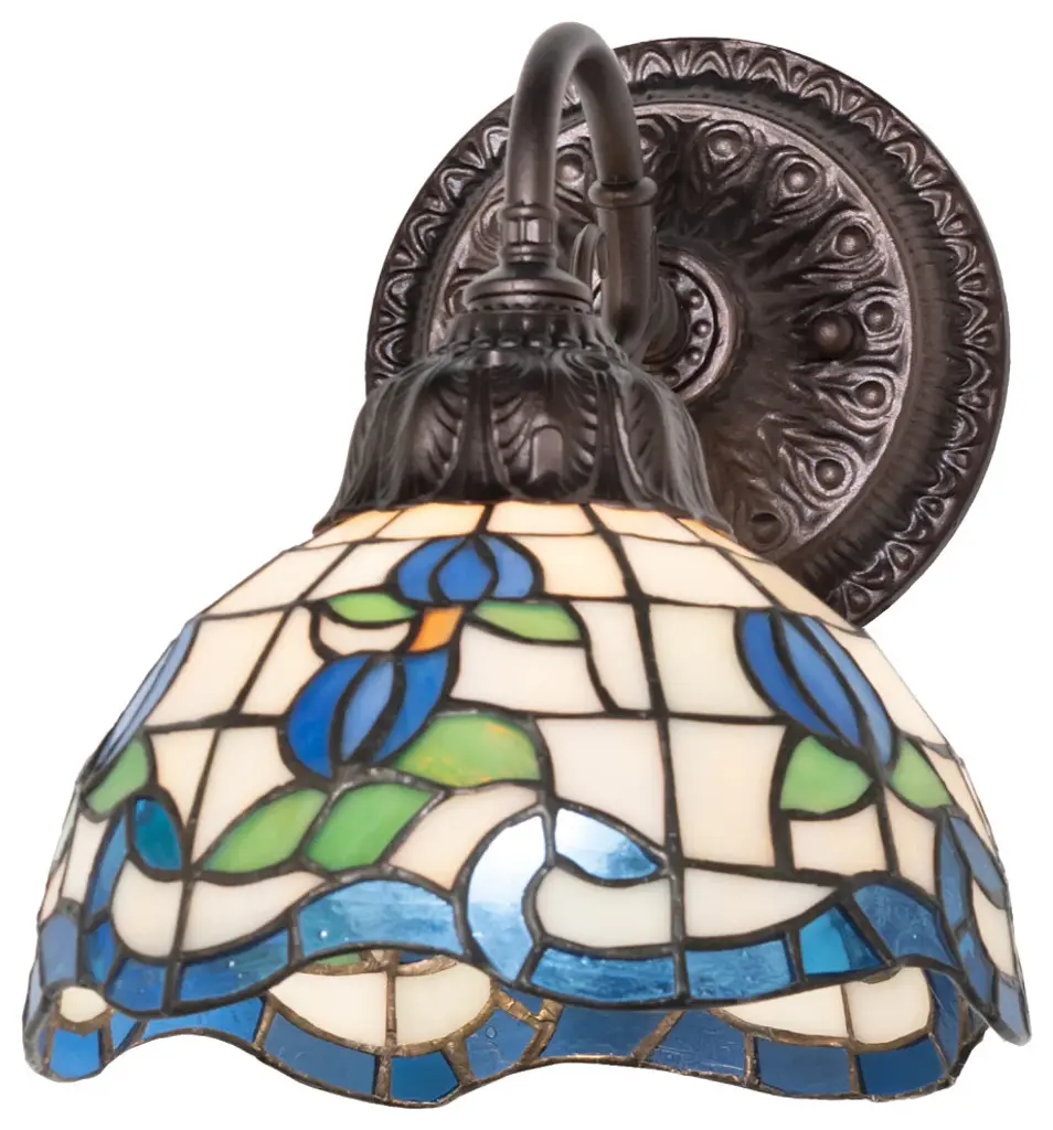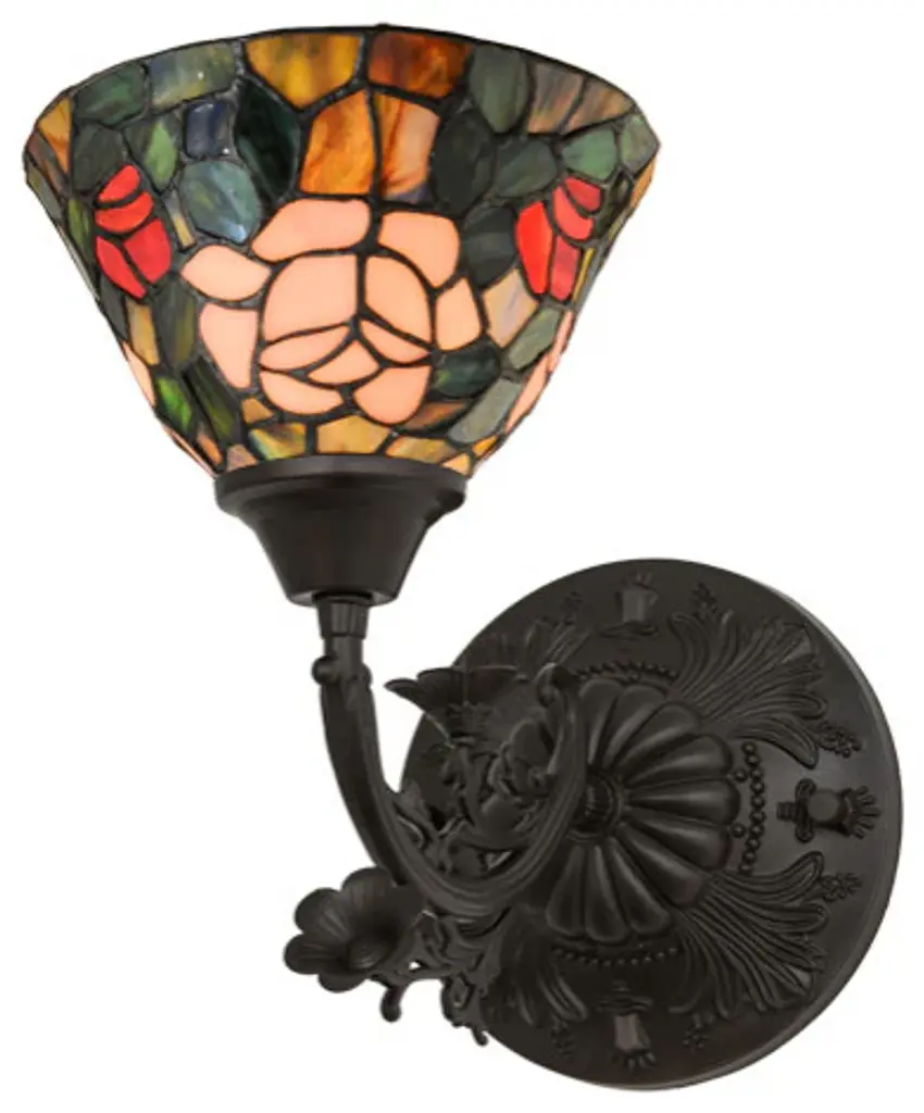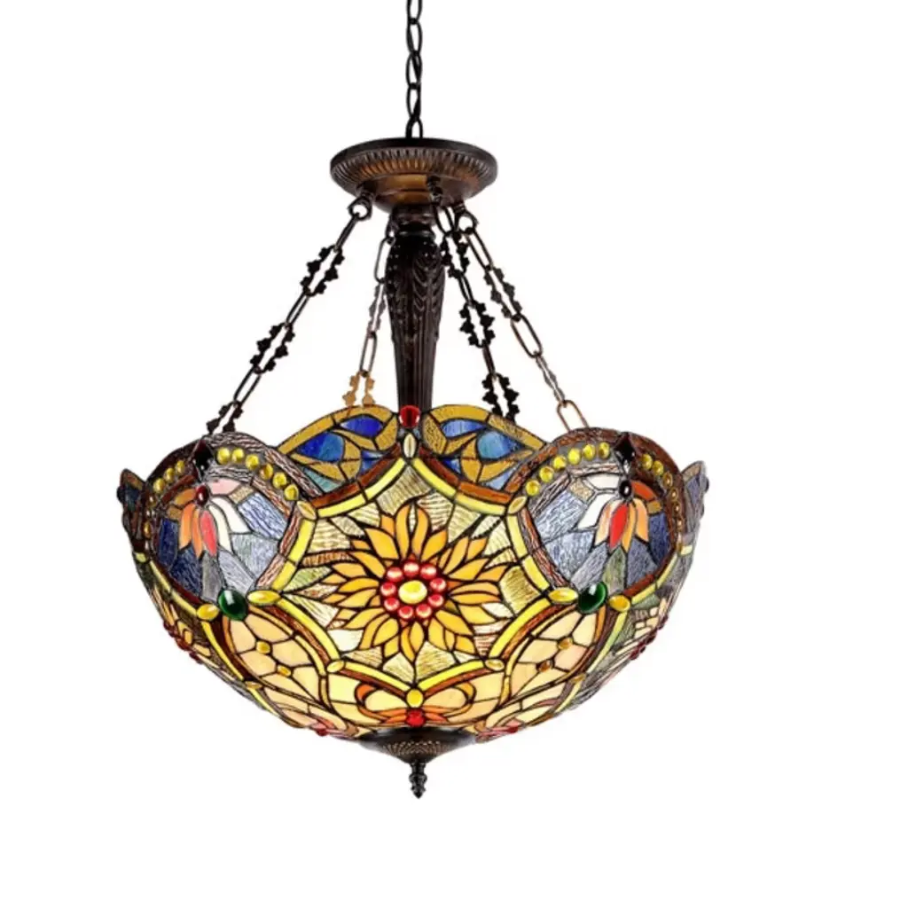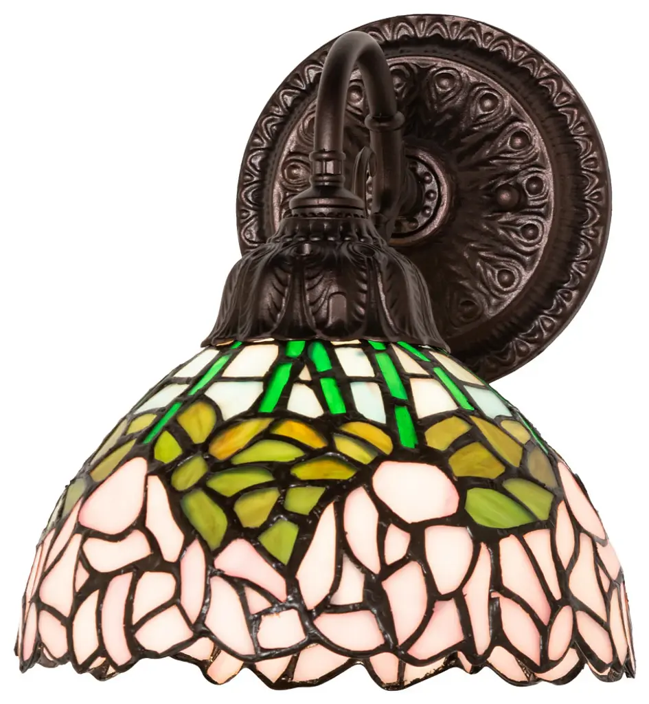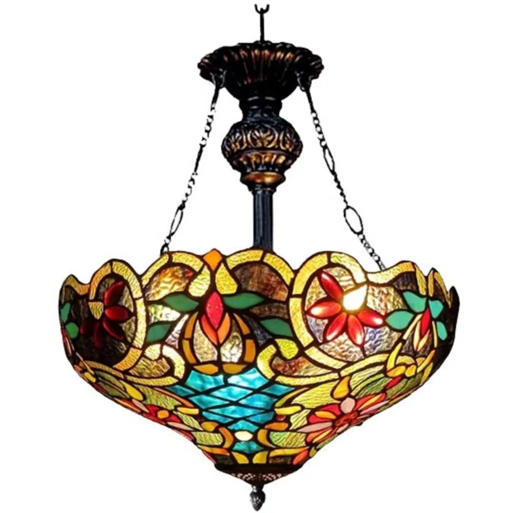 Adia is a beautiful, stained glass reading floor lamp in a traditional Victorian style, featuring a detailed base and a foot switch. This lamp would be perfect in a bedroom, living room, and dining room. The shade is hand-crafted, using the same methods developed by Louis Comfort Tiffany in the early 1900''s. This process entails using 168 hand-cut stained art glass pieces and 20 glass beads, each wrapped in fine copper foil and soldered together at extremely high temperatures to form each unique piece. Exact size to the nearest inch may vary, and exact color of each glass piece may vary due to each piece being hand crafted. First image is with the light shining through, second image is with no light. Dry listed and recommended for an indoor setting.