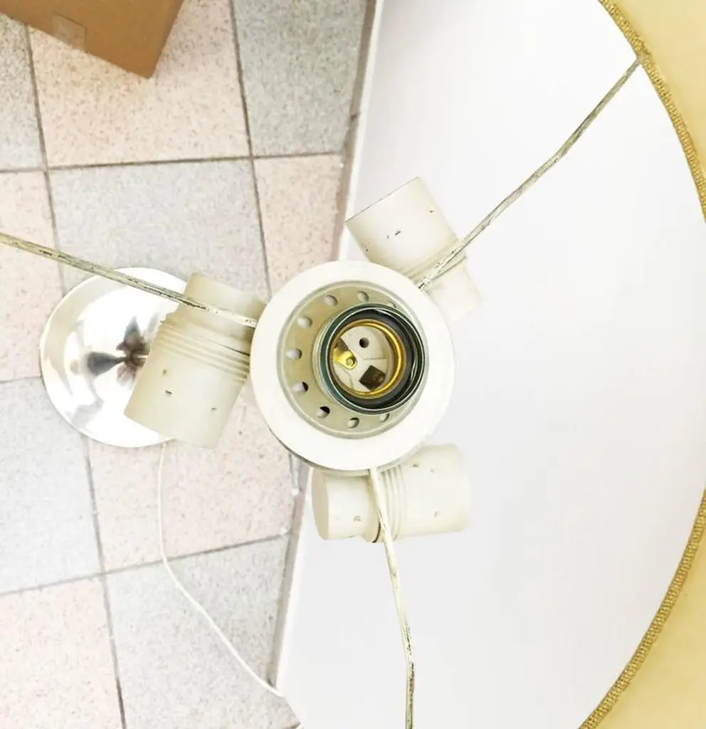 Brass construction chrom-plated with four bulbs and two circuits from 1960s.the height is adjustable.In very good condition. Gives beautiful light.