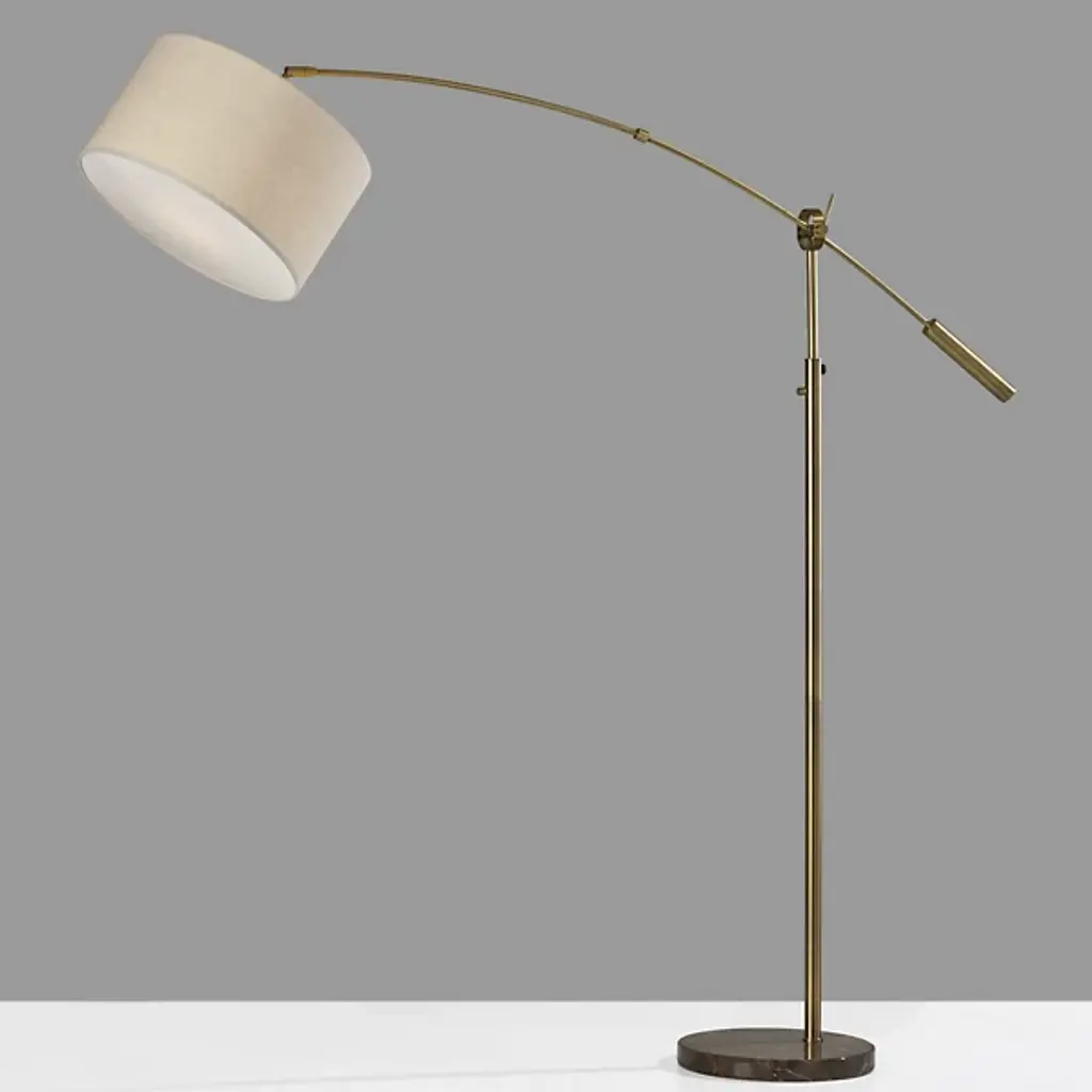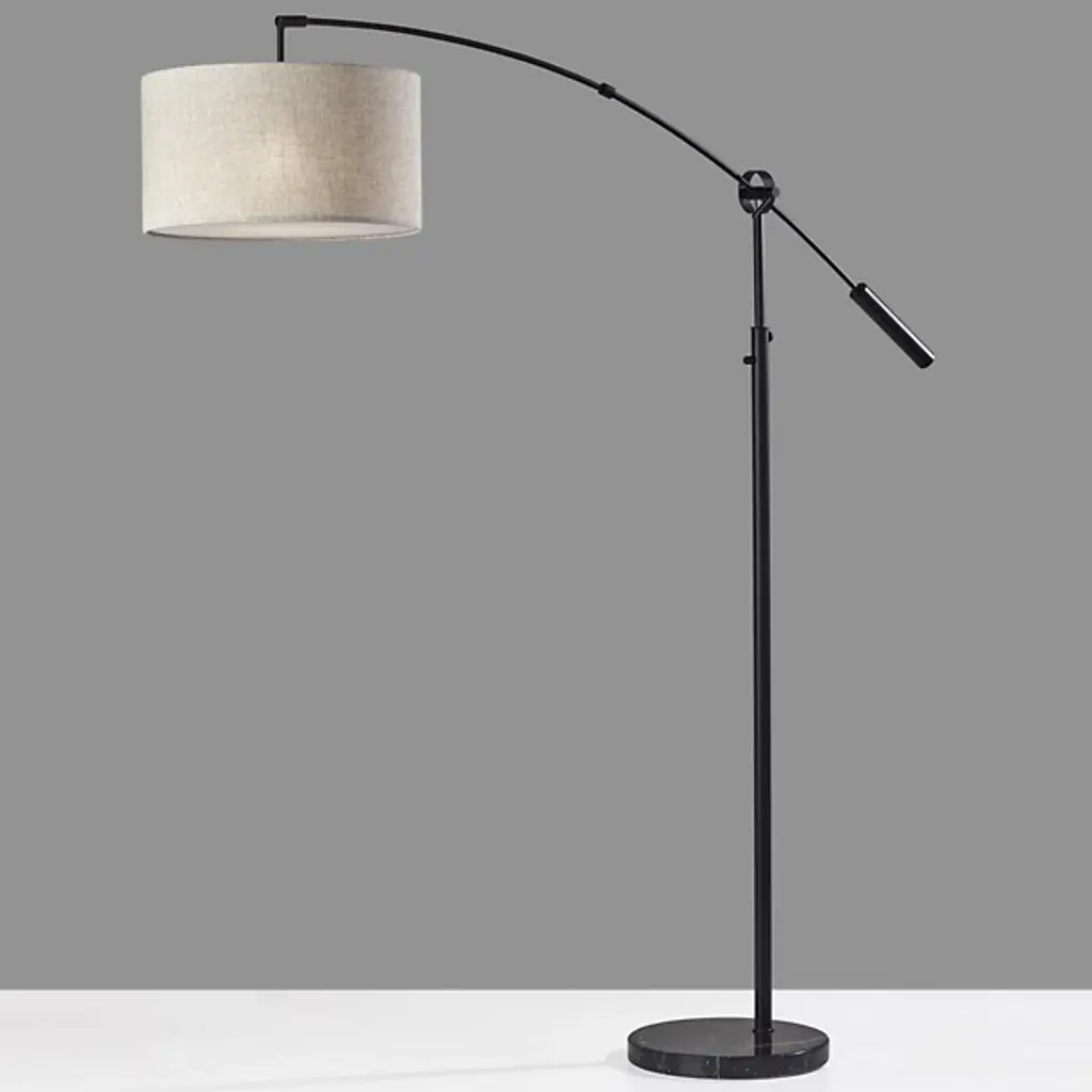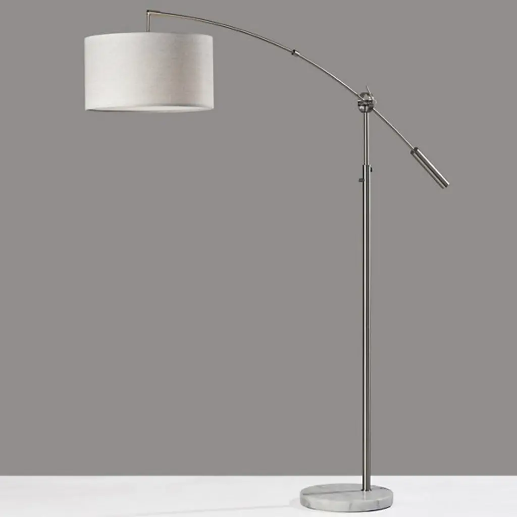 The Adler Arc Floor Lamp by Adesso nicely complements industrial and modern chic décor with its clean lines, rich materials, and uniform design. Made of fine metal, this lamp features a slim stem leading to a sweeping arm that can be adjusted up and down and side to side to meet the needs of your space.