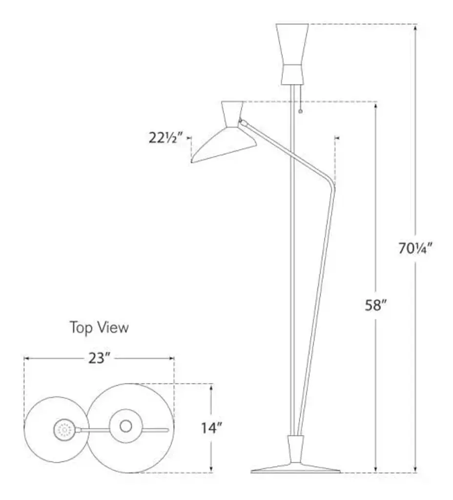 Austen Large Dual Function Floor Lamp in White Designer: AERIN Height: 70.25" Extension: 23" Base: 14" Round Socket: 2 - E26 On-Off Wattage: 2 - 40 A19 Safety Rating Location: DRY