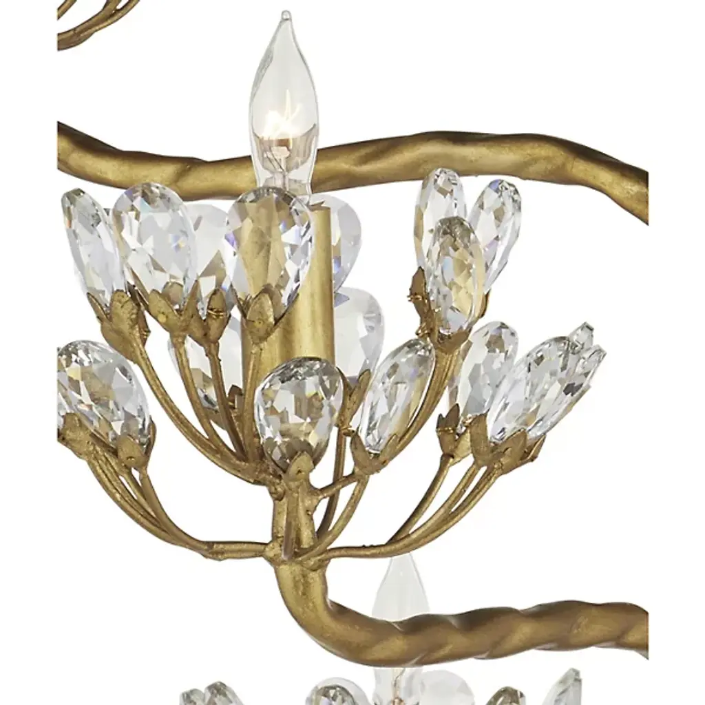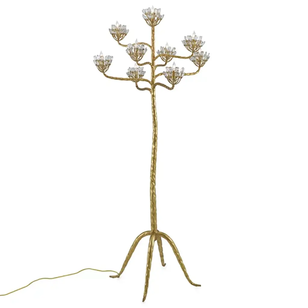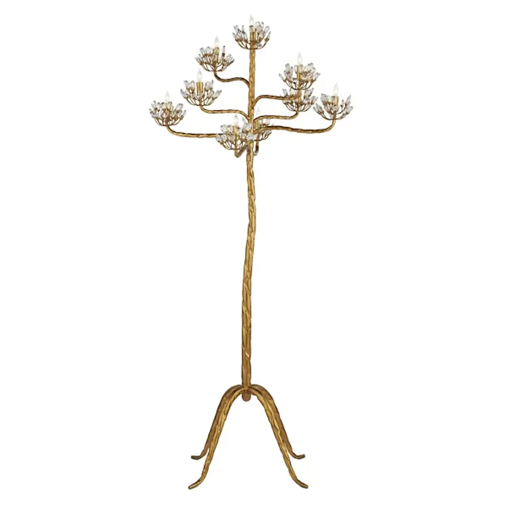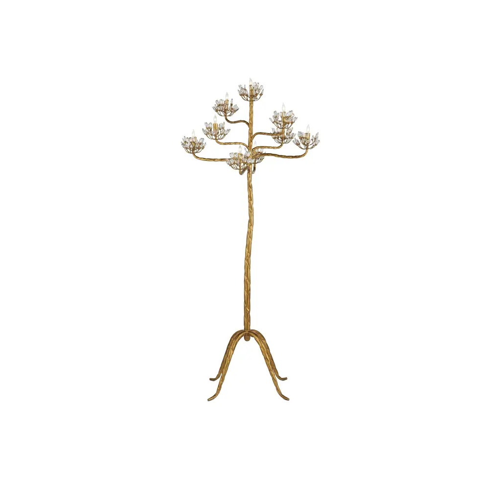 The Agave Americana Floor Lamp from Currey & Company impresses in one’s room like a sun-drenched agave flower towering over the hot desert. The floor lamp’s sculptural, decorative look is unbound by design eras. It moves upwards with hand-forged metal contours defined by a light-catching surface texture. These contours spread out on top in a tiered order. Faceted crystals cluster together like blooming agave flowers. Bulbs nestled inside turn on to produce lively highlights from top to bottom while generating a room-filling glow. • S/F • Hand-forged metal structure • Handcrafted and composed crystal display • Organic design inspired by the American desert Agave plant