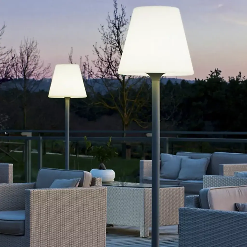 The Artkalia Akaa LED Outdoor Floor Lamp uses the iconic shape and puts it in a modern context. Suitable for both indoors and out, this LED powered floor lamp is made of heavy aluminum and roto molded polyethylene, so it is ready to withstand the elements. The white shade diffuses the LED illumination, keeping your outdoor living space illuminated and stylish.