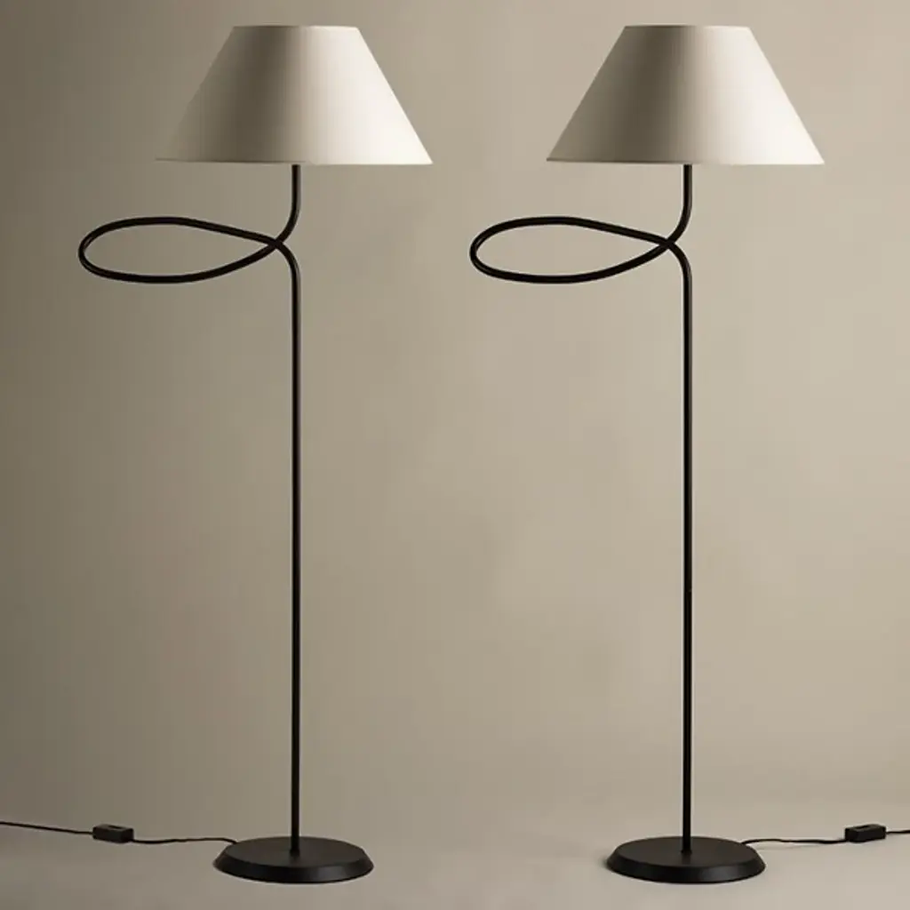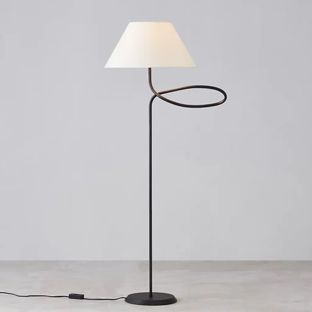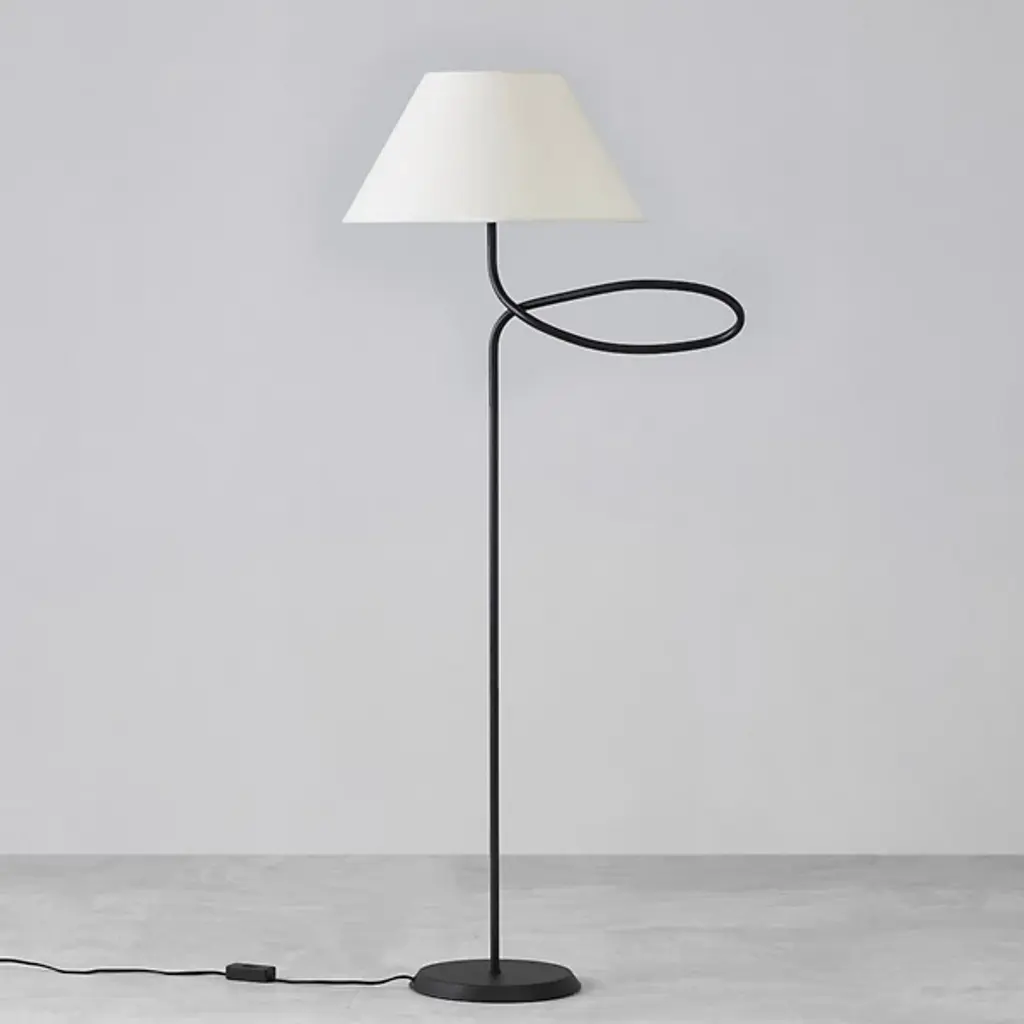 The Alameda Floor Lamp by Troy Lighting is a contemporary light fixture that boasts sinuous curves. Designed by Colin King, a slender stem leads up to an off-white, tapered shade that diffuses the brilliant LED. The light casts a soft ambient glow suited for bedside use or living room accent lighting. With its fluid metalwork and intricate shade material, your 21st-century floor lamp brings artistic refinement to modern bedrooms and living spaces.