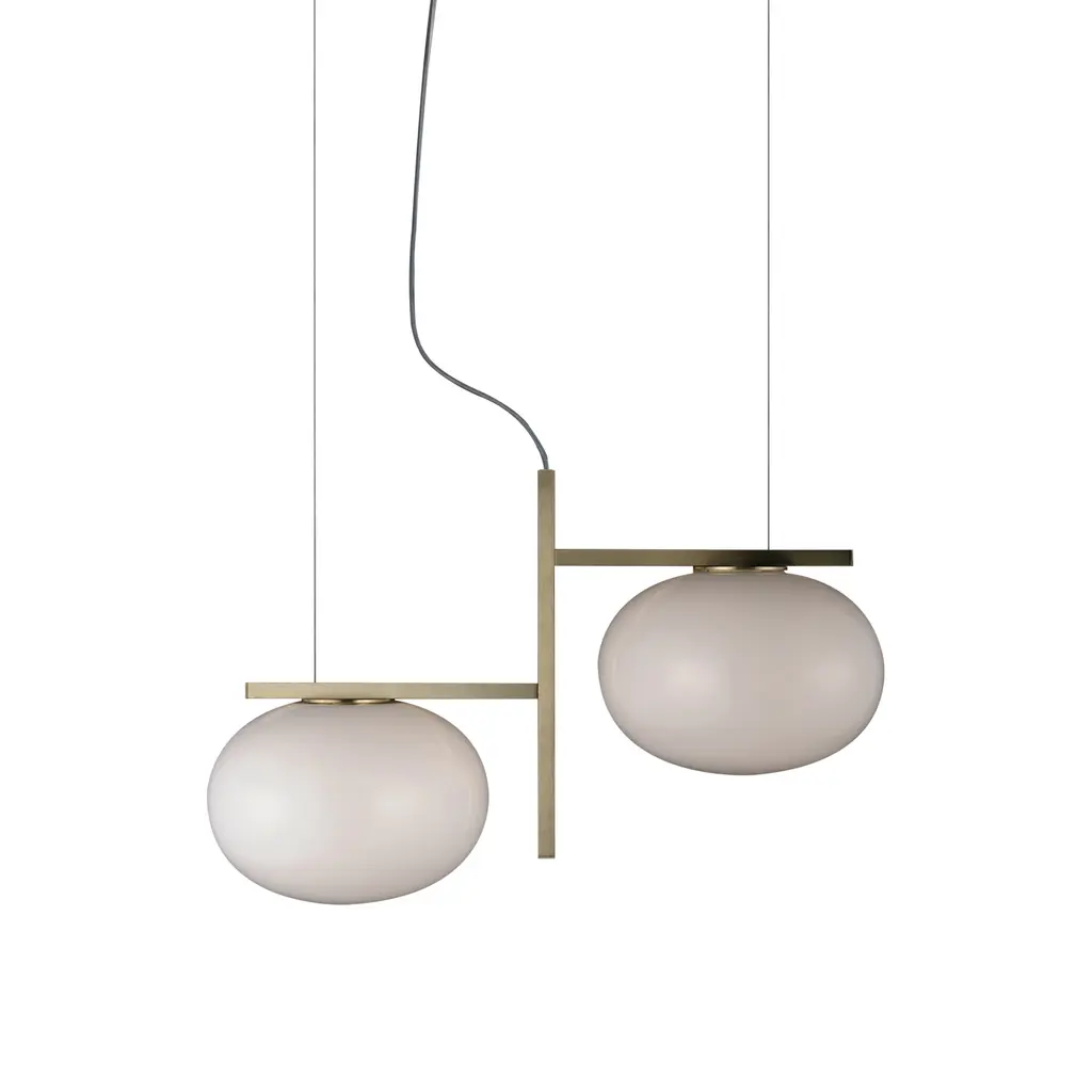 The Alba Suspension Lamp, designed by Mariana Pellegrino Soto, carries the essence of a water droplet, a recurring motif across the Alba collection. Available in multiple configurations: a simple suspended glass drop or a double-drop version supported by staggered metal arms. The structure features premium finishes like satin brass and anodic bronze. The Alba suspension lamp balances natural shapes with linear forms, making it ideal for contemporary spaces that require both functional lighting and artistic expression. Its opaline blown-glass diffusers provide soft, diffused light, creating a warm and inviting atmosphere. The Alba collection’s cohesive design approach extends across wall, table, floor, and suspension lamps, ensuring versatile integration within different interiors.
