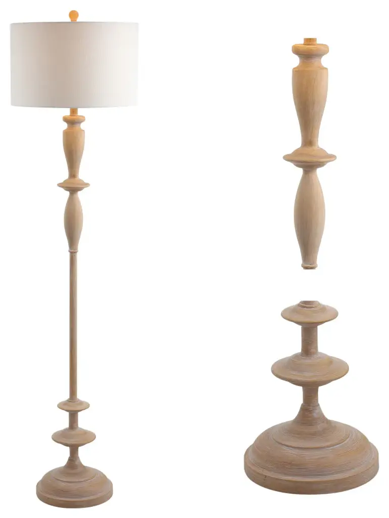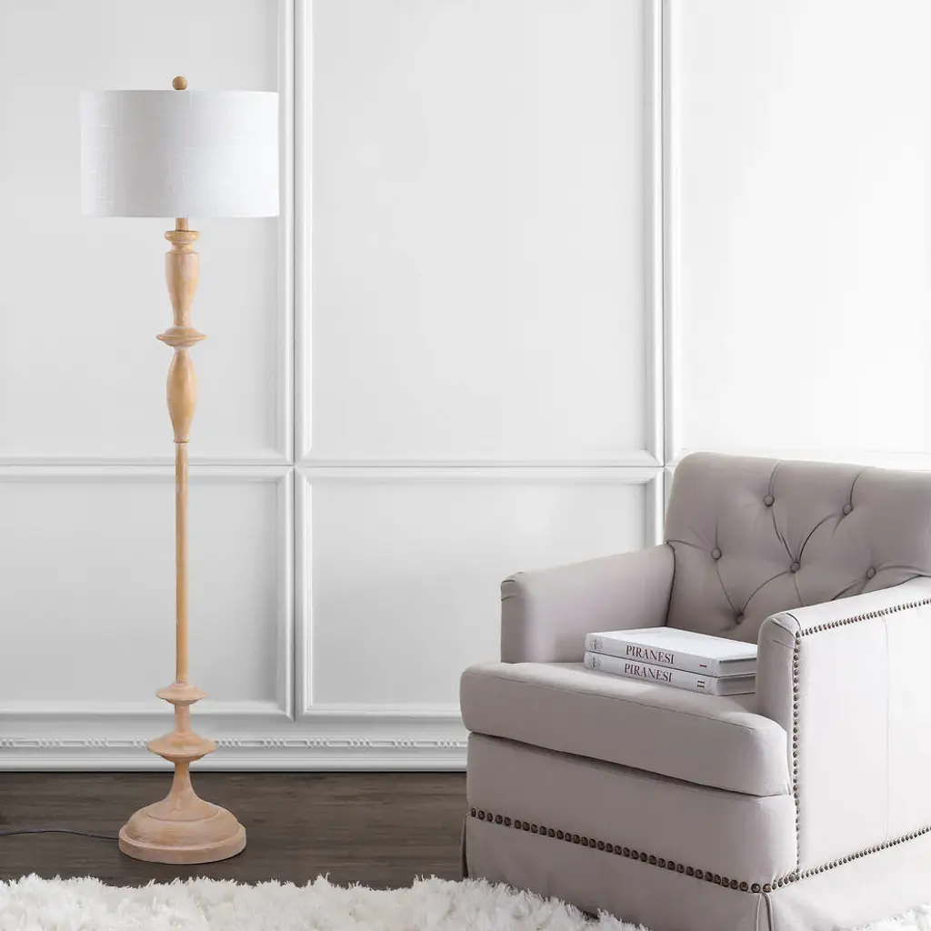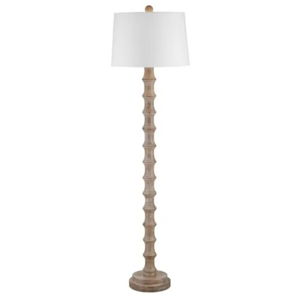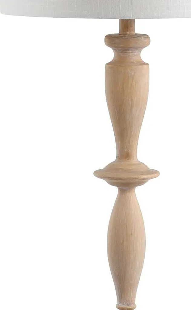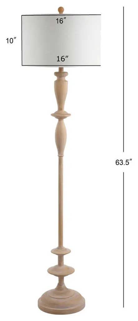 Casted in resin for extra durability, but with the natural appearance of wood, this shapely lamp base adds flair to any vignette. Simulating the classic spindles and turned wood techniques of skilled artisans, the curved base is topped with a classic linen drum shade. This floor lamp operates via a foot-step switch on the silk-wrapped cord. Features:• Simple and understated, this turned wood-finished floor lamp stuns in any setting • 100% cotton hardback drum shade• Beautiful to display or easy to conceal: the 72" cord is silk-wrapped• On-off foot-step switch • Eco-friendly 9W LED bulb included• Takes one bulb and compatible with any 12W LED or 100W Type "A" or 23W CFL• UL Listed • Color: Brown wood finish with white shade• Body Material: Resin• Base Material: Resin• Finial Material: Resin• Finial Color: Wood Finish• Harp Color: Gold• Includes: One (1) lamp(s)• Minor Assembly RequiredDimensions:• Lamp: 63.5 inches high x 16 inches wide x 16 inches deep• Shade: 10 inches high x 16 inches wide x 16 inches deepAbout us:You see a lamp.We see a decorative work of art.A perfectly curved shade casts a dramatic shadow on a floor. A silk cord you never want to hide. LED lightbulbs: as easy on the environment as they are on the eyes. The JONATHAN Y Lighting collection considers every detail from impeccably sourced materials to designer styling. And our prices are so attractive, we''ve transformed a functional necessity into a fashion accessory.JONATHAN Y Lighting - a fashion revolution in home decor.
