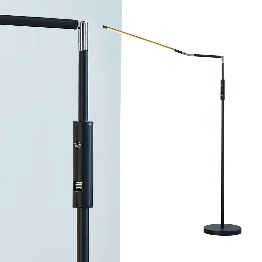 HOMEGLAM design, the Alpha simple linear LED floor lamp, the floor lamp features 12W high bright 3000K light color with easy reach on pole 4 bright levels touch dimmer for high-med-low and off control, the lamp is designed for functional with adjustable lamp height, angel and light directions, the lamp also comes with 2 USB charge ports which create very convenient to your space. The Alpha slim floor lamp is a perfect functional LED light for your both work or living space with slim modern, fashion and style.FEATURES: • 48"~76" heigth, angle and light direction adjustable • High bright 12W dimmable 3000K warm light build-in led light • Easy reach on pole 4 Ways LED touch dimmer for high-med-low-off • 2 USB charge ports output, 5VDC, 2A Max • ETL listed LED driver • Assembly required