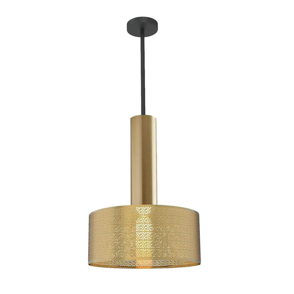 Introducing the Alula Modern Brass Pendant Light - a stunning lighting fixture that seamlessly combines mid-century style with Moroccan-inspired design. Each piece is handcrafted by skilled artisans using locally-sourced brass, resulting in a truly unique and one-of-a-kind product., Featuring a sleek tubular form and a hand-etched shade with small perforations, this brass pendant light casts a warm and inviting glow in any space. Hang it in your kitchen, hallway, bedroom, dining room, or entryway to add a touch of modern elegance to your home or commercial space. The brass hanging light fixture comes with a matching metal ceiling cup and an adjustable cord, making it easy to install and customize to fit your unique needs. And, with UL certification for your safety and peace of mind, you can trust that this product is not only stylish but also reliable., Don't settle for ordinary brass light fixtures. Choose the Alula modern brass pendant light to elevate your decor. Available in a range of sizes and modern metal finishes. Order now and experience the beauty of handcrafted, locally-sourced lighting.
