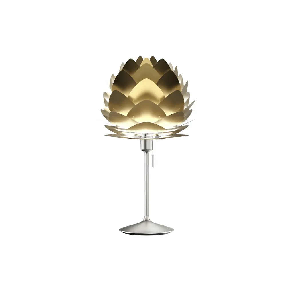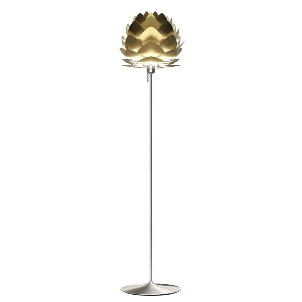 Champagne's curved floor base makes a fizzy pairing with a flower-like LED light from Umage cofounder and designer Sřren Ravn Christensen. Aluvia's no ordinary posey, with its lightweight but sturdy layered aluminum form in brushed finishes of bronze or brass or a smart range of select hues. The equally glamorous stand is available in brushed steel or brass as well as black and white to complement the organic shade in a choice of medium or mini models.