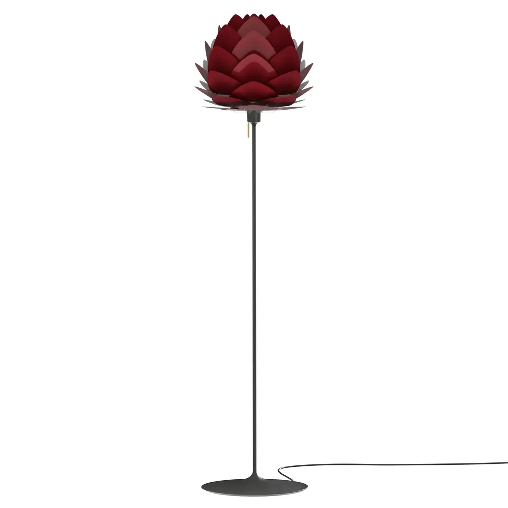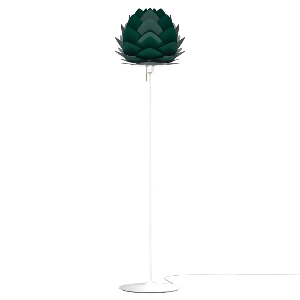 Champagne's curved floor base makes a fizzy pairing with a flower-like LED light from Umage cofounder and designer Sřren Ravn Christensen. Aluvia's no ordinary posey, with its lightweight but sturdy layered aluminum form in brushed finishes of bronze or brass or a smart range of select hues. The equally glamorous stand is available in brushed steel or brass as well as black and white to complement the organic shade in a choice of medium or mini models.