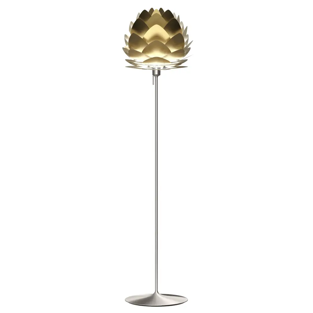 Champagne's curved floor base makes a fizzy pairing with a flower-like LED light from Umage cofounder and designer Sřren Ravn Christensen. Aluvia's no ordinary posey, with its lightweight but sturdy layered aluminum form in brushed finishes of bronze or brass or a smart range of select hues. The equally glamorous stand is available in brushed steel or brass as well as black and white to complement the organic shade in a choice of medium or mini models.