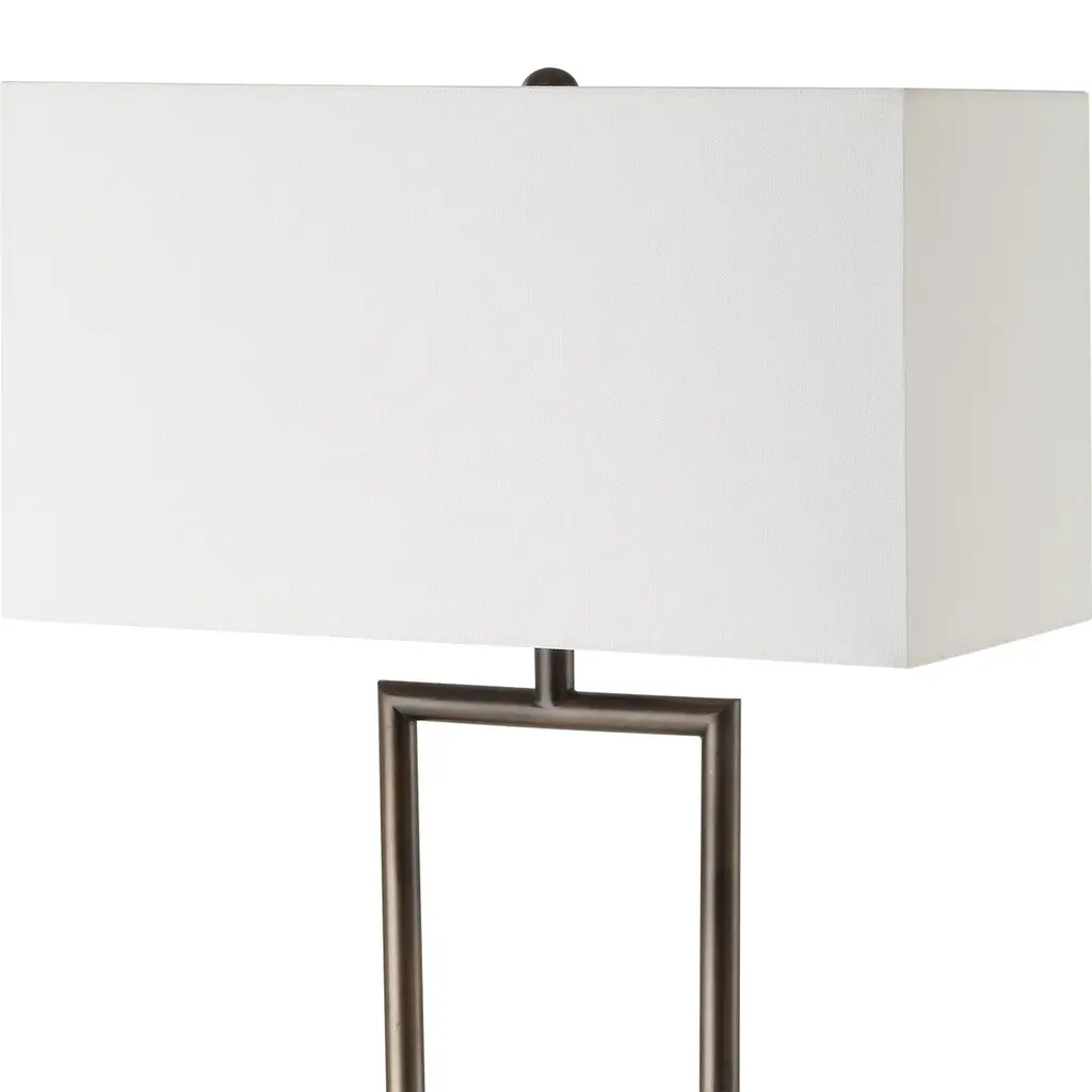 Illuminate your space with the Amara Floor Lamp, a striking blend of modern design and timeless elegance. This floor lamp showcases a distinctive split iron column, exuding sophistication and charm. It stands gracefully on a substantial block of beige travertine, adding a touch of natural beauty to its robust structure. Topping this exquisite piece is a rectangular drum shade, enveloped in a casual white linen fabric, which diffuses light softly, creating a warm and inviting ambiance. Perfect for any decor, this floor lamp is a testament to refined craftsmanship and style.