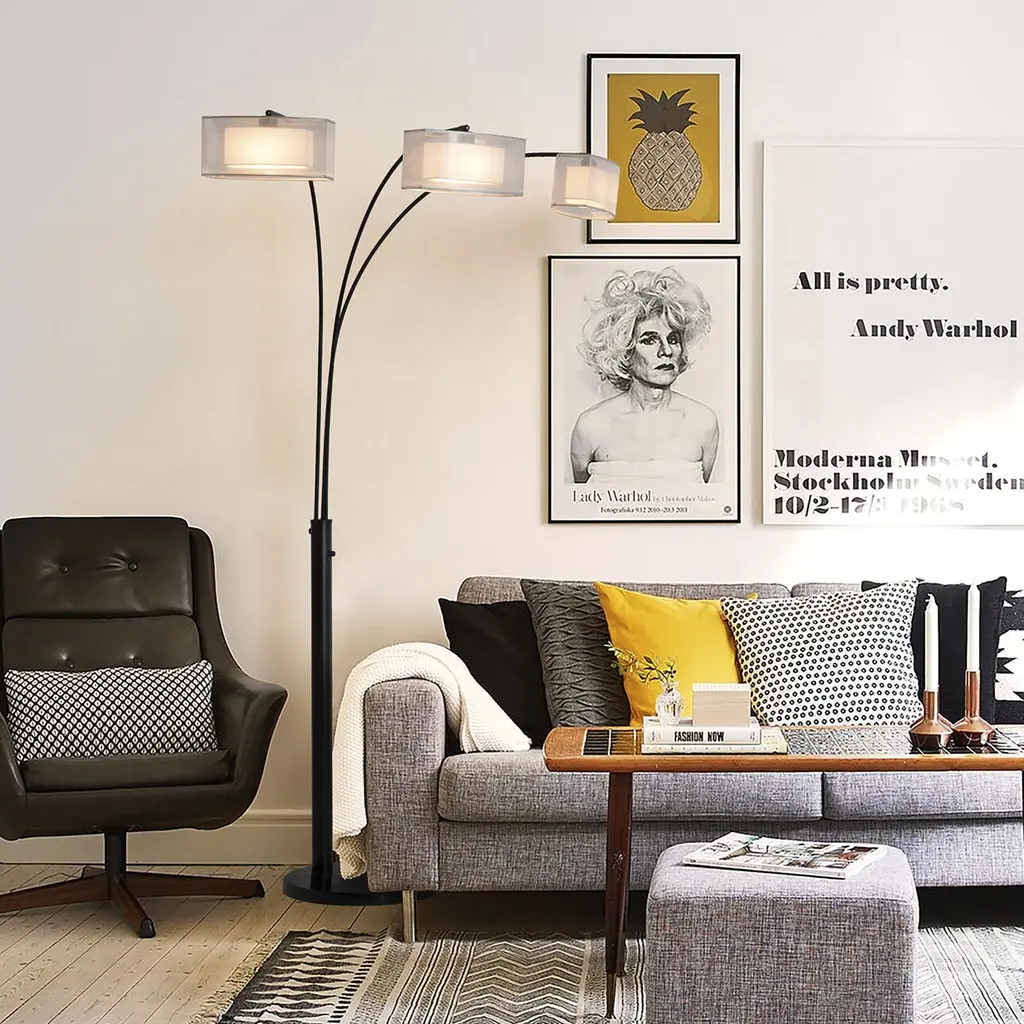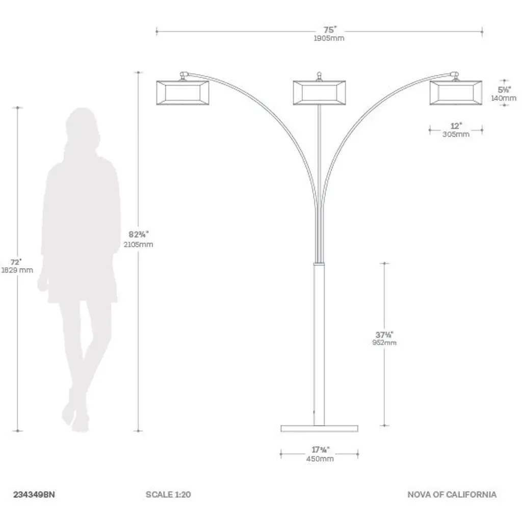 Introducing the Amarillo 3 Light Arc Floor Lamp, a true classic in NOVA's mid-century modern collection. This lamp stands as a testament to timeless design and functional brilliance. Its sheer organza shade, complemented by an inner linen shade, effortlessly diffuses light across the room while casting a powerful downlight. The three adjustable shades provide a customizable spread and rotation, allowing you to tailor the lighting to your exact preference. Gracefully curving over a sofa or chair, the Amarillo becomes a focal point, radiating warm and inviting light to fill the entire room. Crafted with contract-grade quality, this floor lamp is not just a source of light; it's a statement of enduring style and durability. Embrace the allure of mid-century design with the Amarillo 3 Light Arc Floor Lamp, where form meets function in perfect harmony. Nova of California offeres a variety of high quality lighting designs to choose from. Explore the entire collection to find the perfect piece for your home.