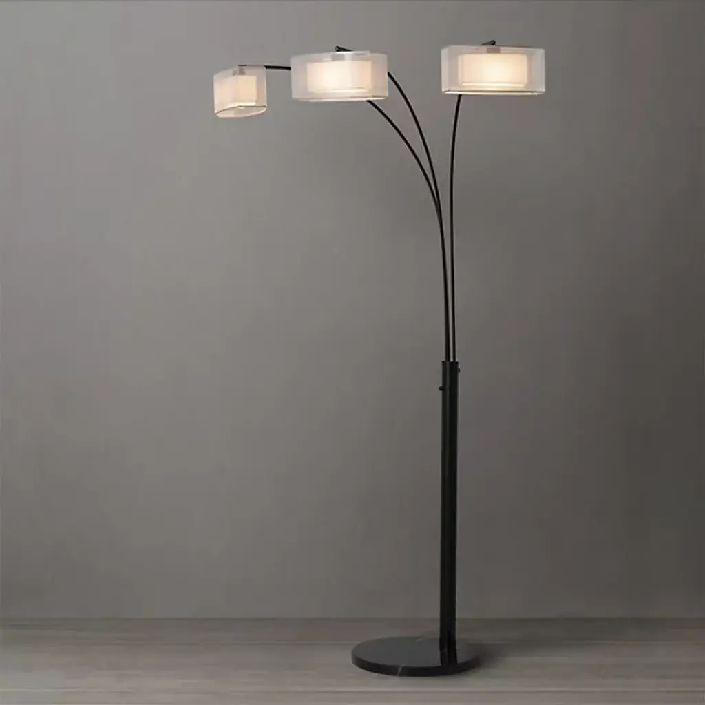 The Amarillo Arc Floor Lamp from Nova of California is a stunning piece that effortlessly blends transitional style with functionality. This elegant floor lamp features a sleek arc design supported by a sturdy round baseplate. Crafted from high-quality steel and wood, this floor lamp is topped with white organza shades, creating a soft and inviting glow. Illuminated by efficient LEDs, this fixture offers beauty and practicality. The on/off inline switch provides effortless control.