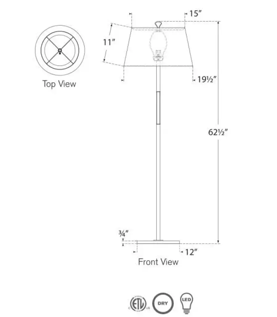 Inspired by natural materials, elements are brought to life with the simple lighting of Amber Lewis' Griffin series. Lending a touch of sophistication to ceilings and walls alike, the clean designs feature curved lines and unique accents like leather wrapping and chains that add textural details to any room. Designer: Amber Lewis Height: 62.5" Shade Detail: 15" x 19.5" x 11" Base: 12" Round Socket: E26 Dimmer Wattage: 15 LED A19 Safety Rating Location: DRY Assembly Required? Yes