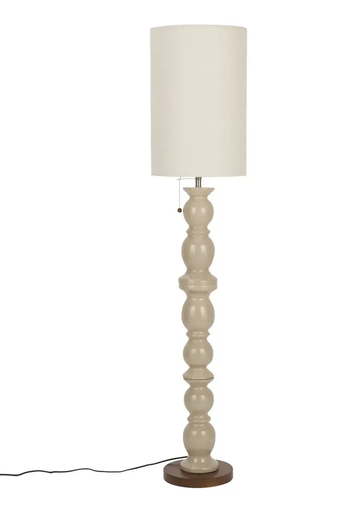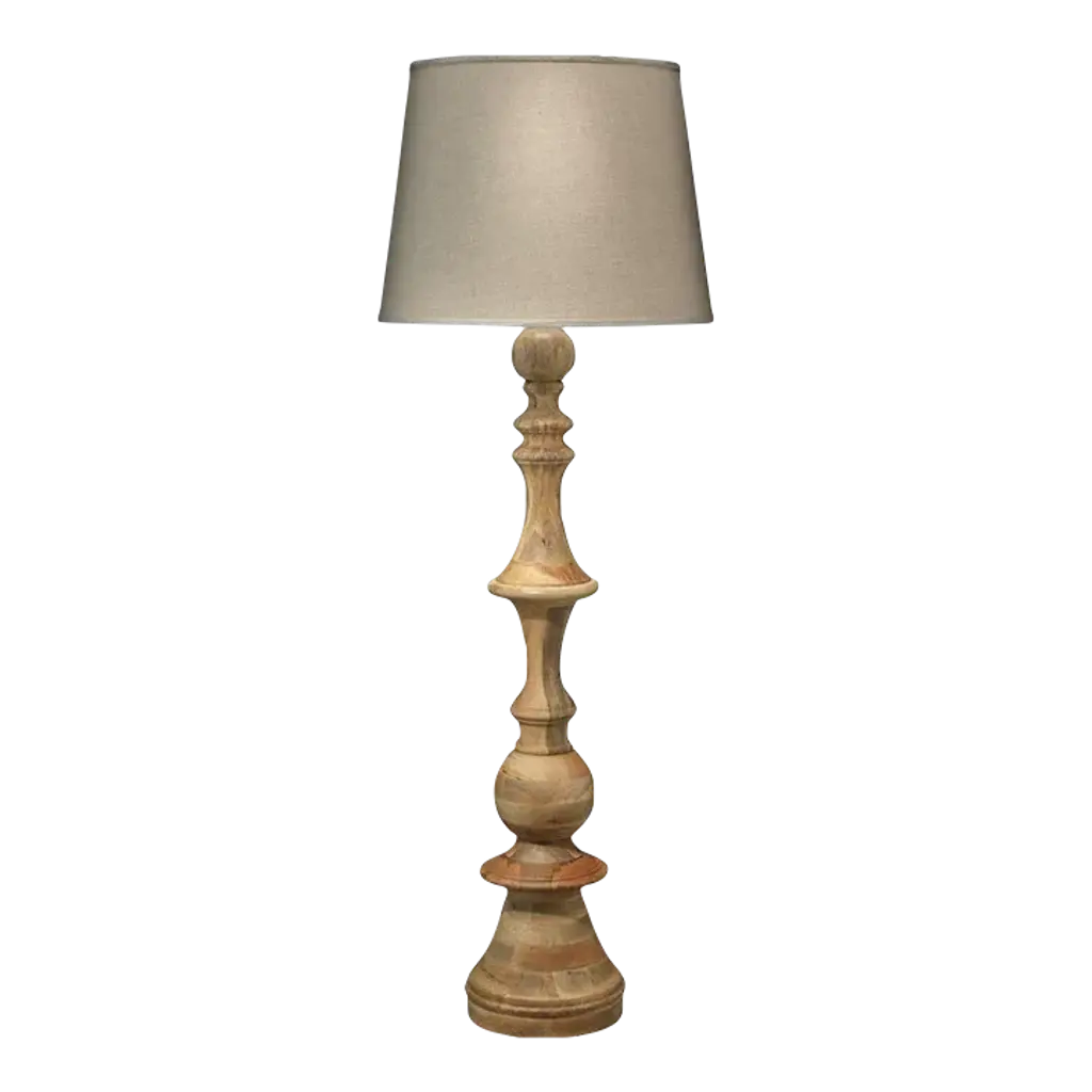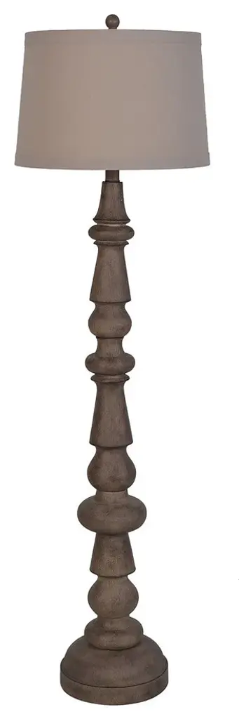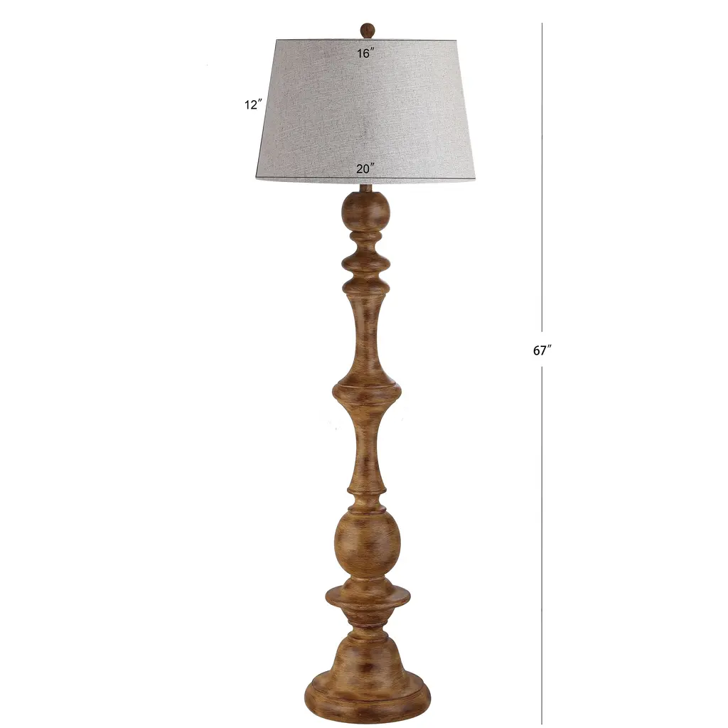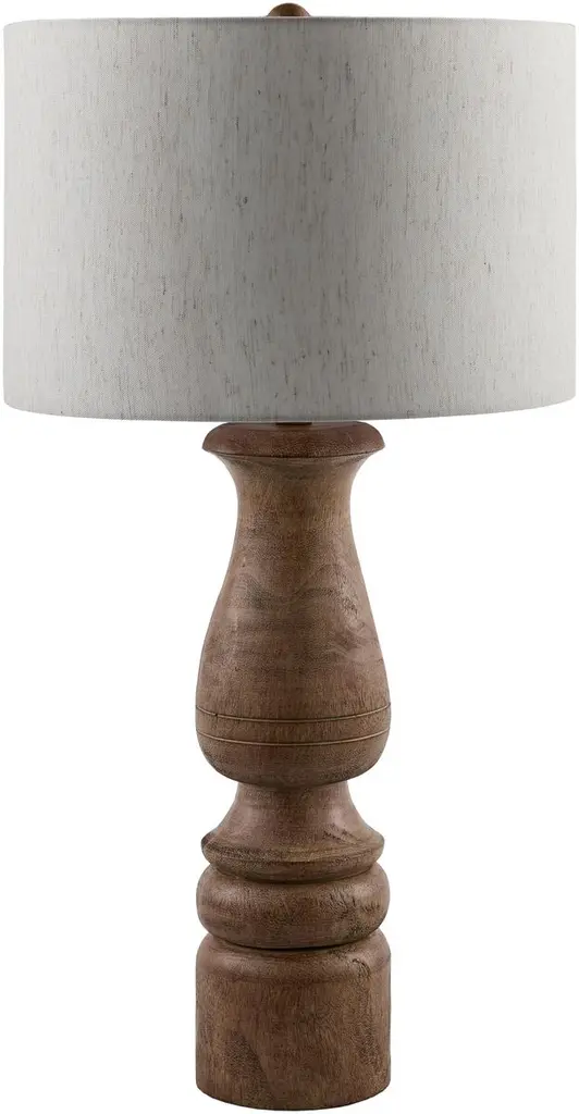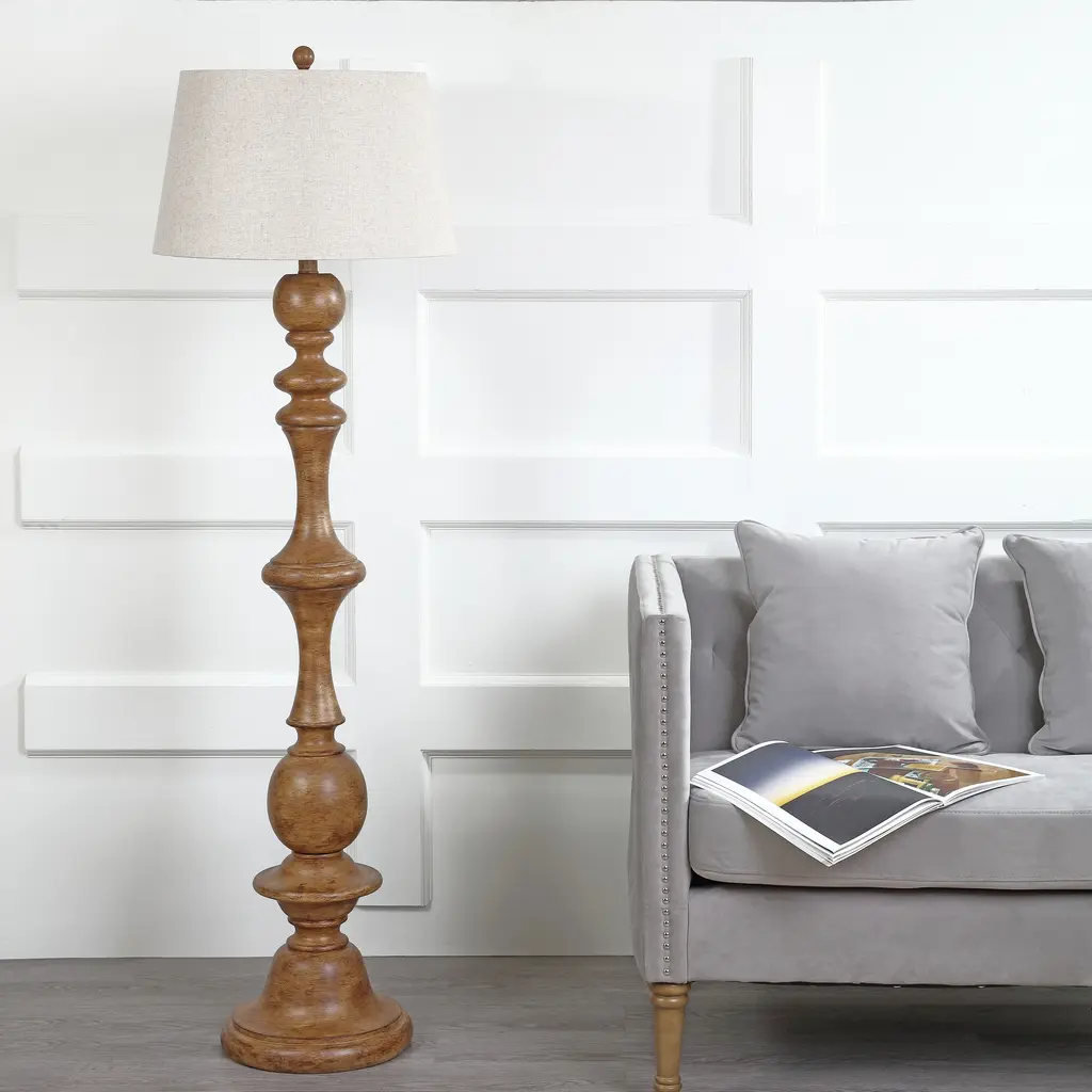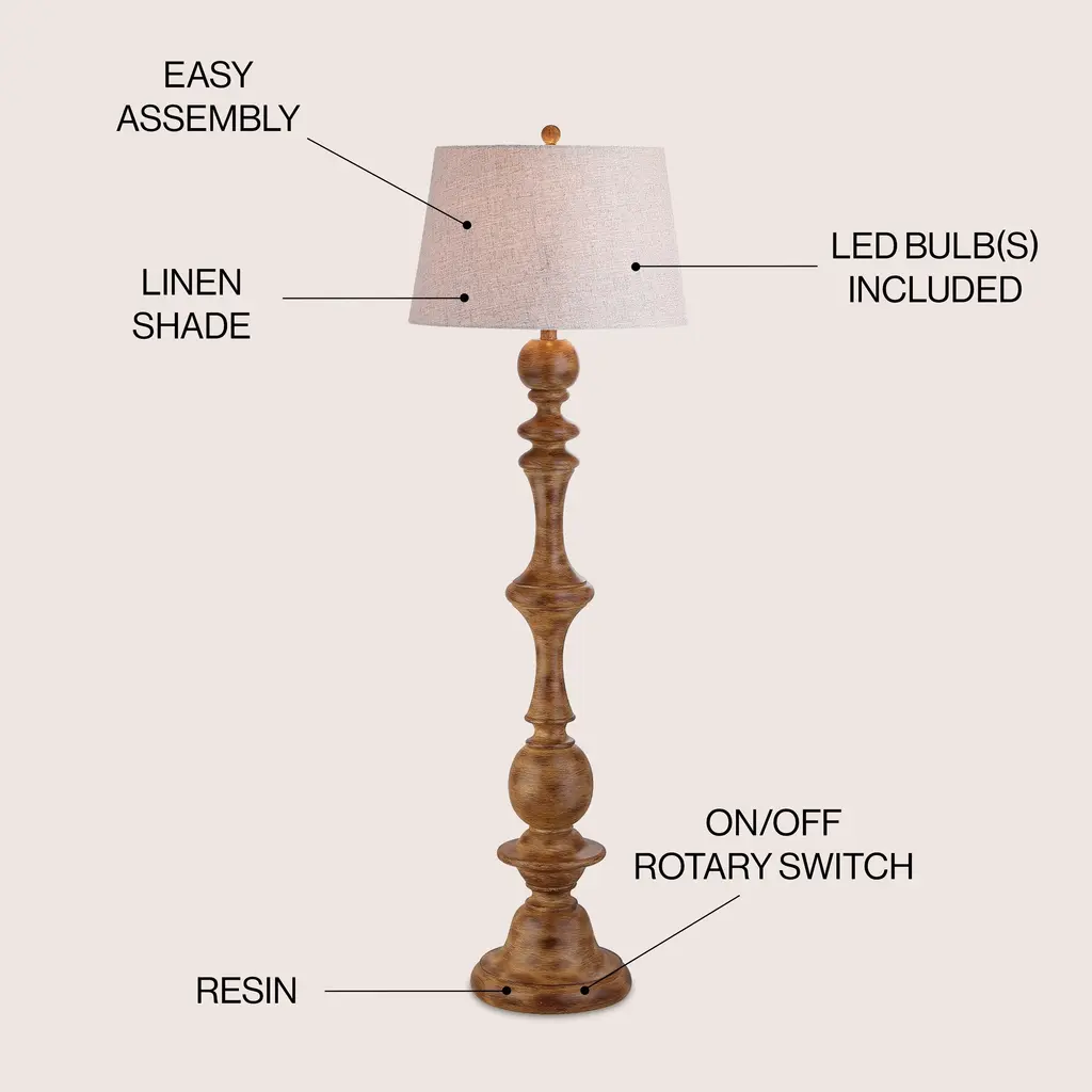 Inspired by the spindled shapes of turned wood furniture, this resin table lamp has all the curves of wood but is cast in resin for stronger structural integrity. With a hand-applied finish to give the effect of wood staining, the finish gives it rustic charm while the silhouette is statement making. Finished with a silk-wrapped cord and linen drum shade, this piece is the perfect addition for a reading corner. Features:Dimensions:About us:You see a lamp.We see a decorative work of art.A perfectly curved shade casts a dramatic shadow on a floor. A silk cord you never want to hide. LED lightbulbs: as easy on the environment as they are on the eyes. The JONTHAN Y Lighting collection considers every detail from impeccably sourced materials to designer styling. And our prices are so attractive, we've transformed a functional necessity into a fashion accessory.JONATHAN Y Lighting … a fashion revolution in home décor.