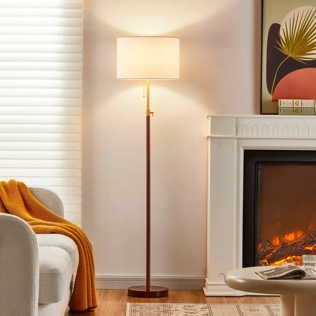 Designed by Ciarmoli Queda Studio, this sophisticated floor lamp is an exercise in timeless elegance. The stem is made of double-tapered elements upholstered in stingray skin and marked at top and bottom with brass accents. It rests on a marble round base and is topped with a white drum-shaped shade in pleated silk that houses the E27 LED bulb.