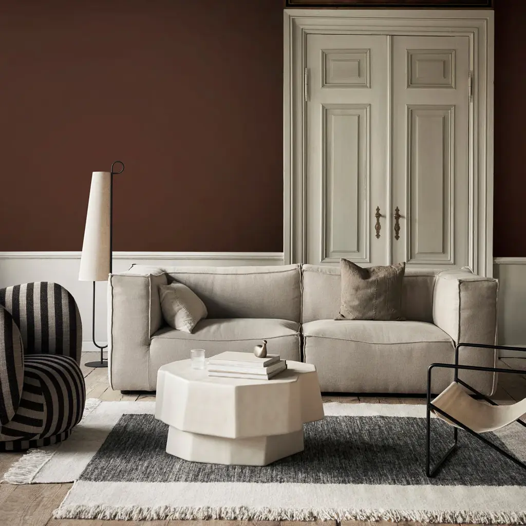 The Ancora Floor Lamp derives its name from the Italian word for 'anchor,' drawing inspiration from its distinctive shape. The warm and textured textile lampshade beautifully contrasts its powder-coated iron base, resulting in a poetic and vintage-inspired expression. This design effortlessly balances lightness and materiality, creating an enchanting ambiance in any space. Bulb not included.