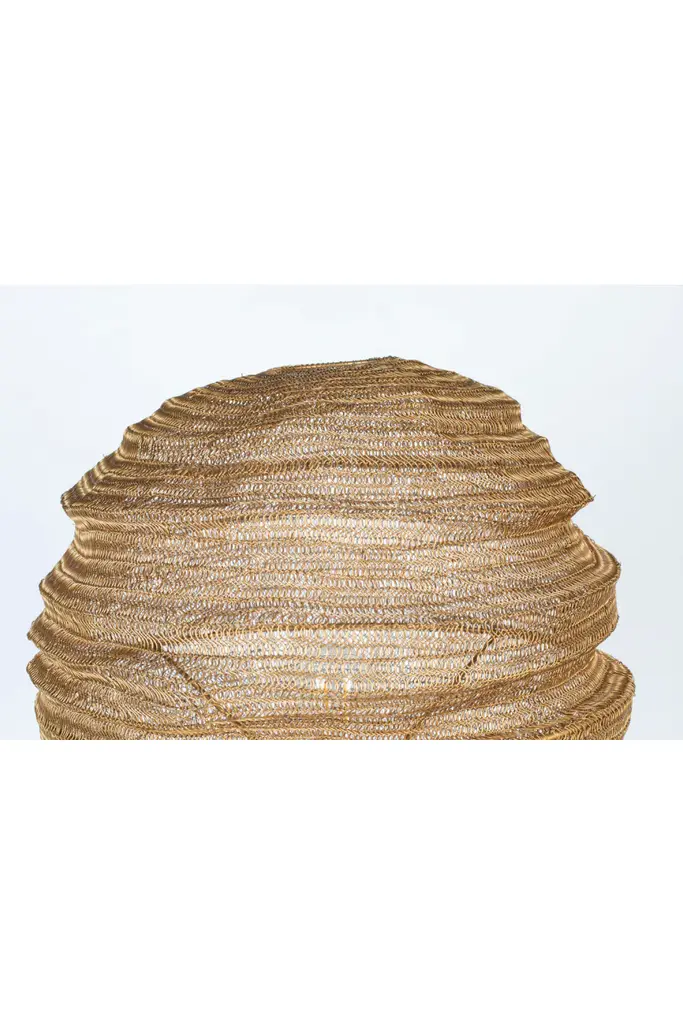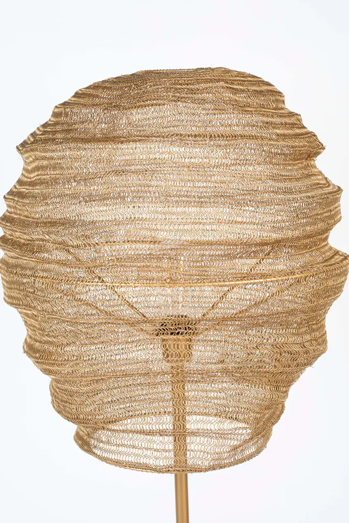 A gorgeous floor lamp made of intricately woven iron in gold finish. Lena by DF presents a unique geometrical canopy casting interesting shadows and silhouette over any space.